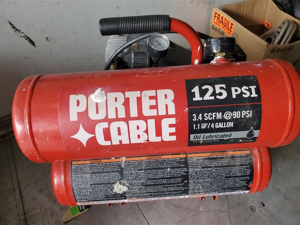 Porter cable 125 PSI Air compressor - Most Items have not been tested - Viewing Recommended- 17% Buyer Fee. Payment Processed through Live Auction World ( Visa or Master Card ) pick up Saturday, or Tuesday