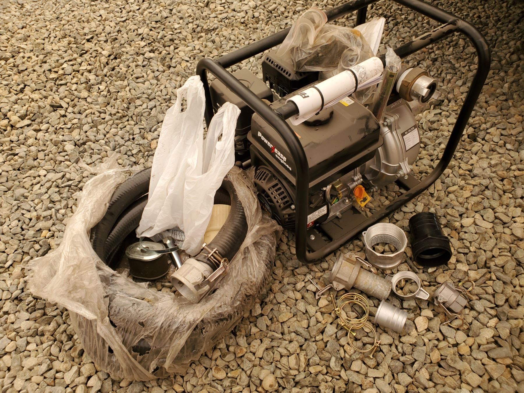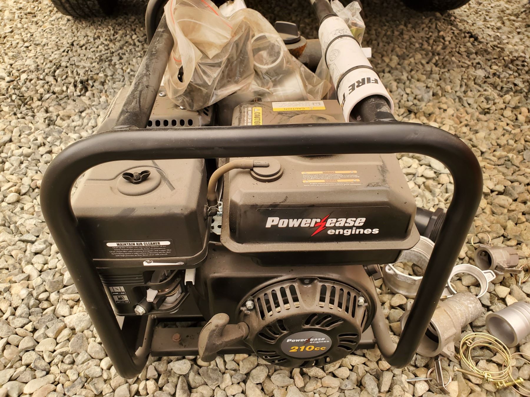 Power Ease Fire Fighting Pump With Black Hose - Items have not been tested - Viewing Recommended- 17% Buyer Fee. Payment Processed through Live Auction World ( Visa or Master Card ) pick up Saturday or Tuesday
