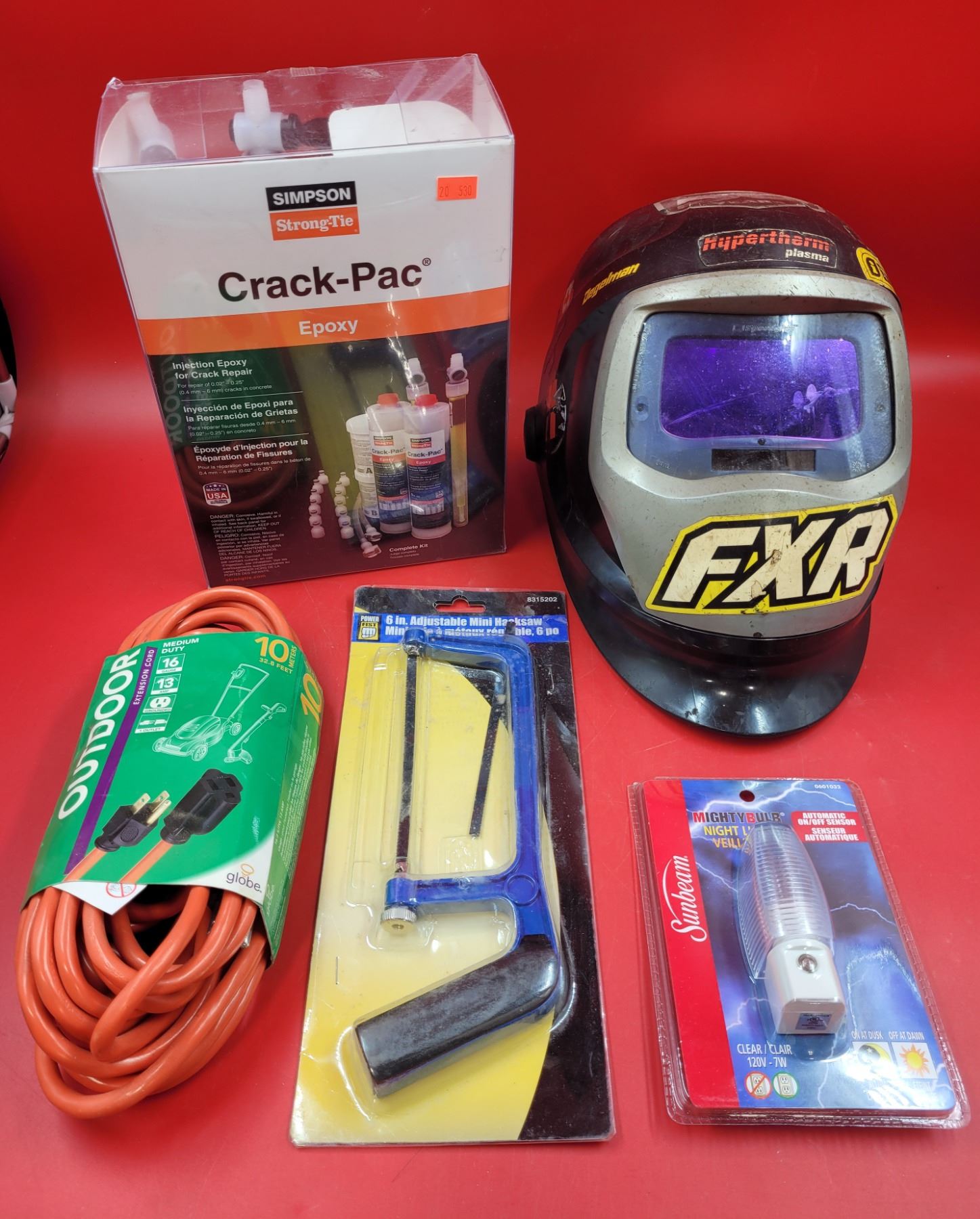 Power Fist 6 In. Adjustable Mini Hacksaw, Welding Helmet, Extension Cord & Tool Lot