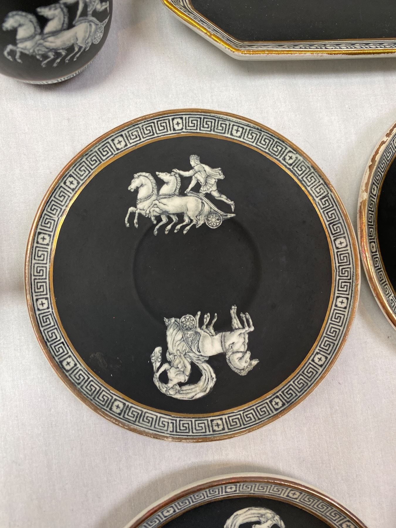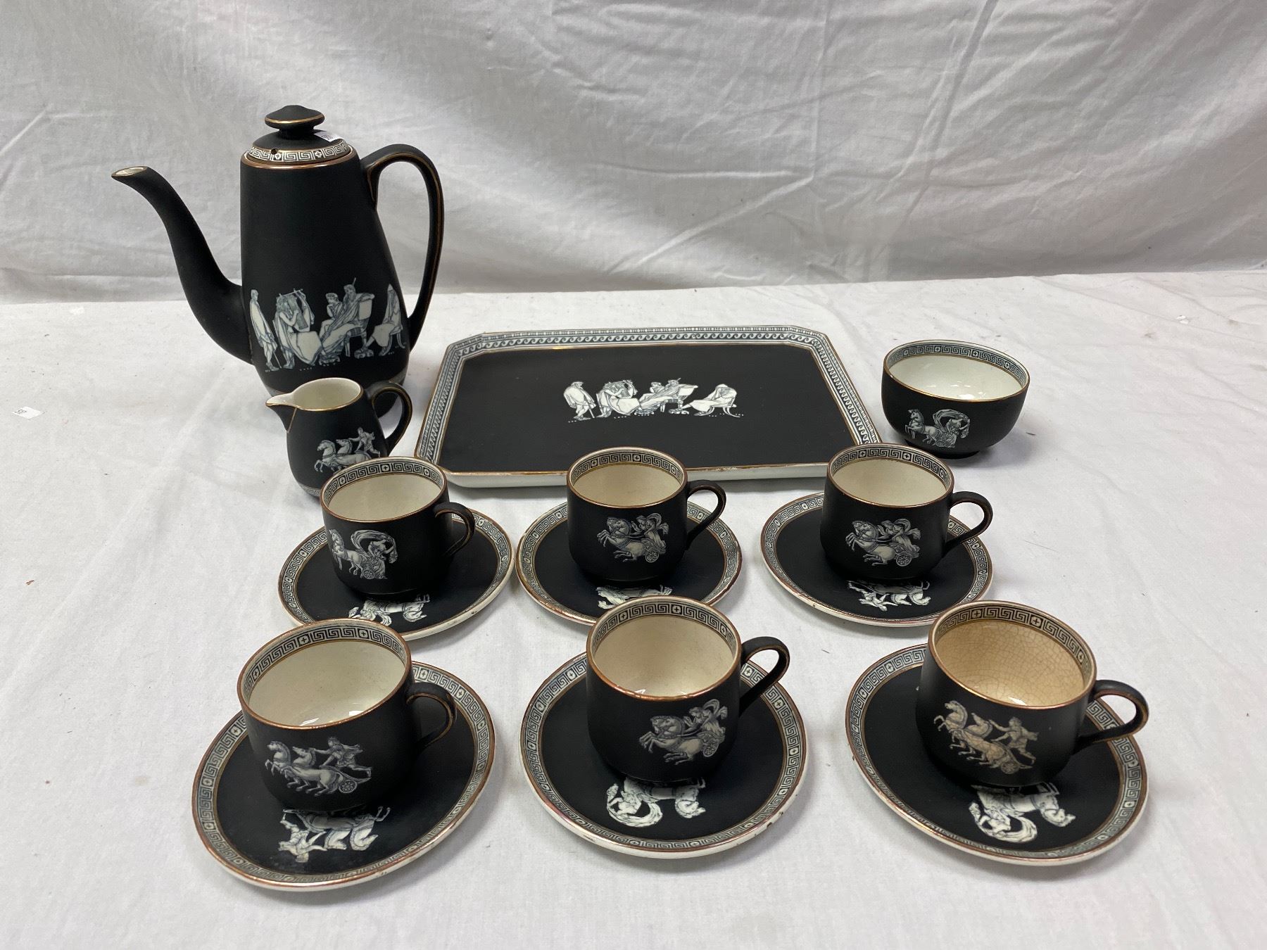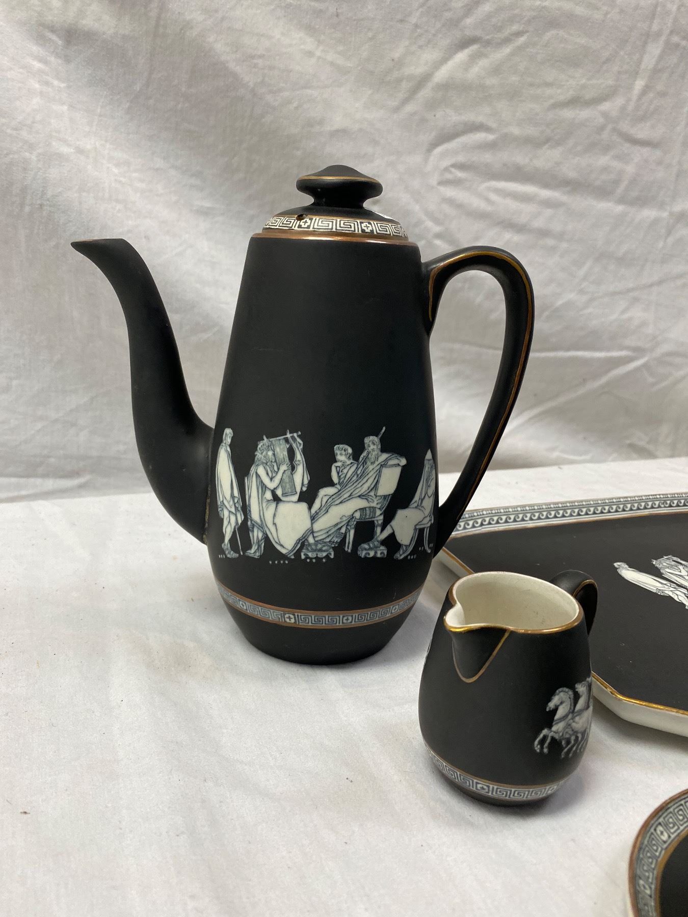 Pratt Fenton Old Greek Tea Set With Teapot, Cups, Creamer, Saucers, Tray, Etc...