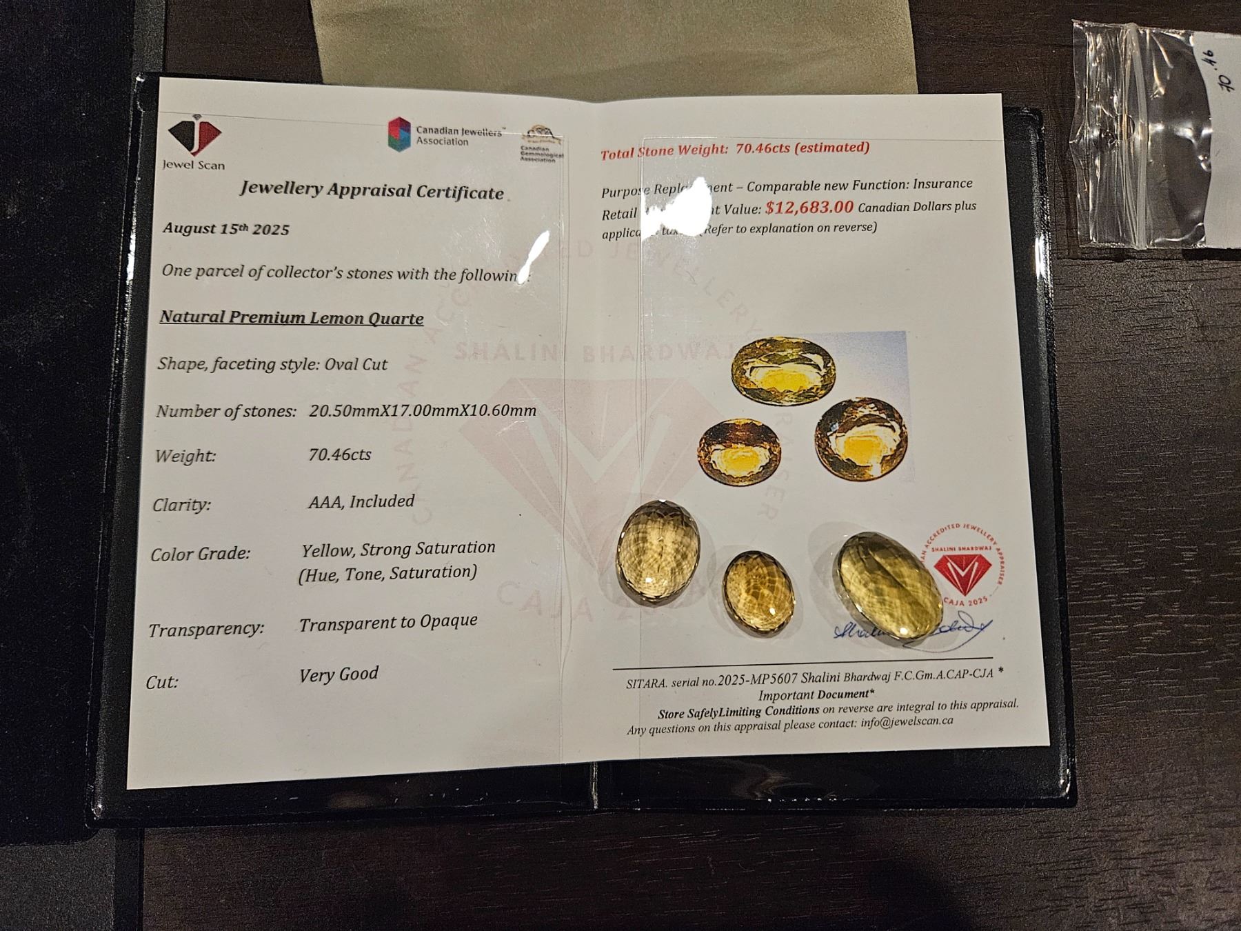 70.46ct Total weight- Lemon Quartz stones, Oval shaped. Retail value $12,683.00