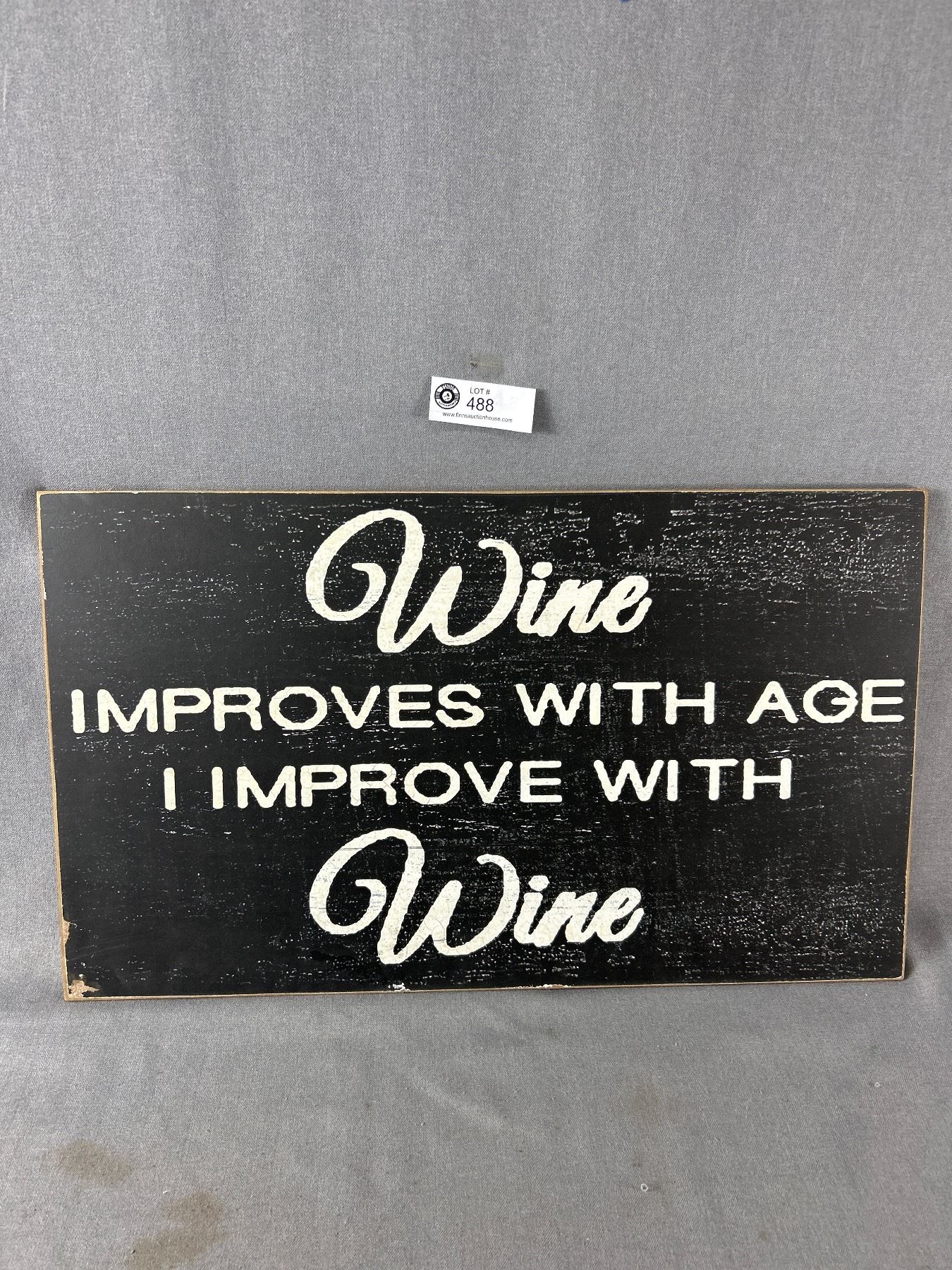 Press Board " Wine Improves With Age…" Sign. Approx. 13" x 22"