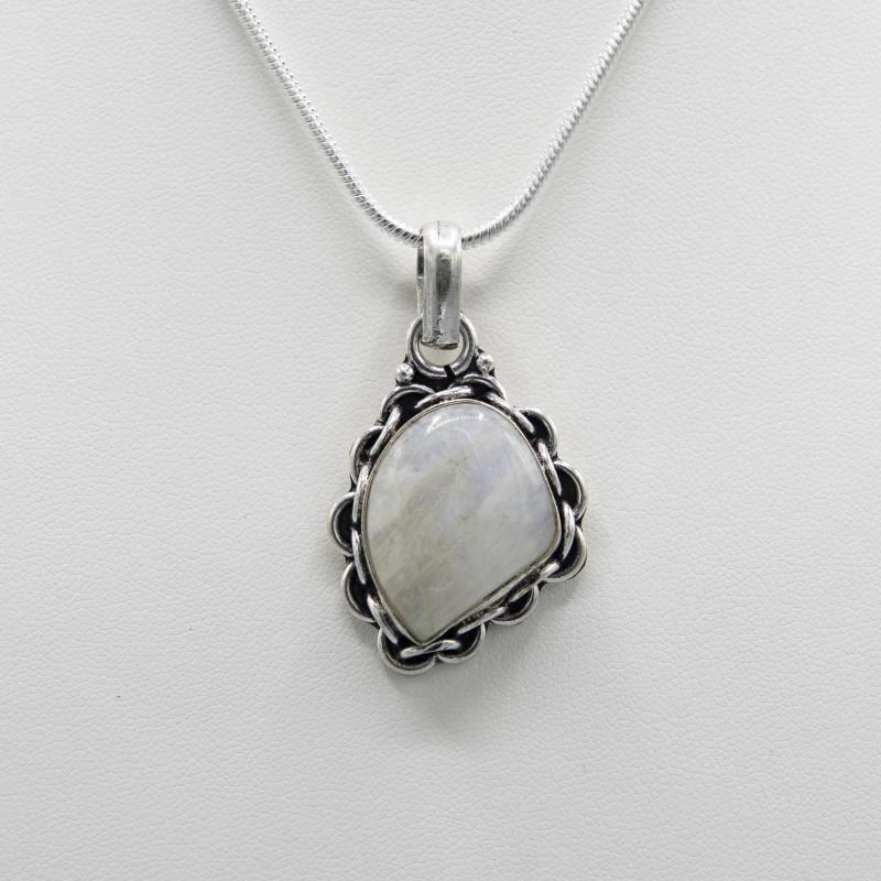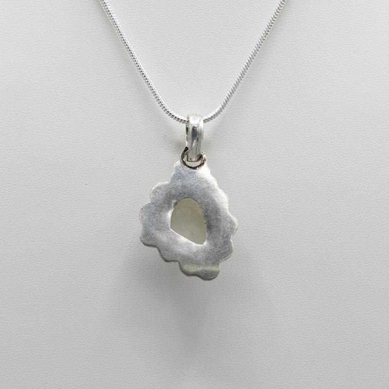 Fine cabochon cut mounted in solid .925 sterling silver. Pendant includes and 20" 2mm chain. Vivid luster and polish. 101.5 CTTW or 20.2 total gram wt.