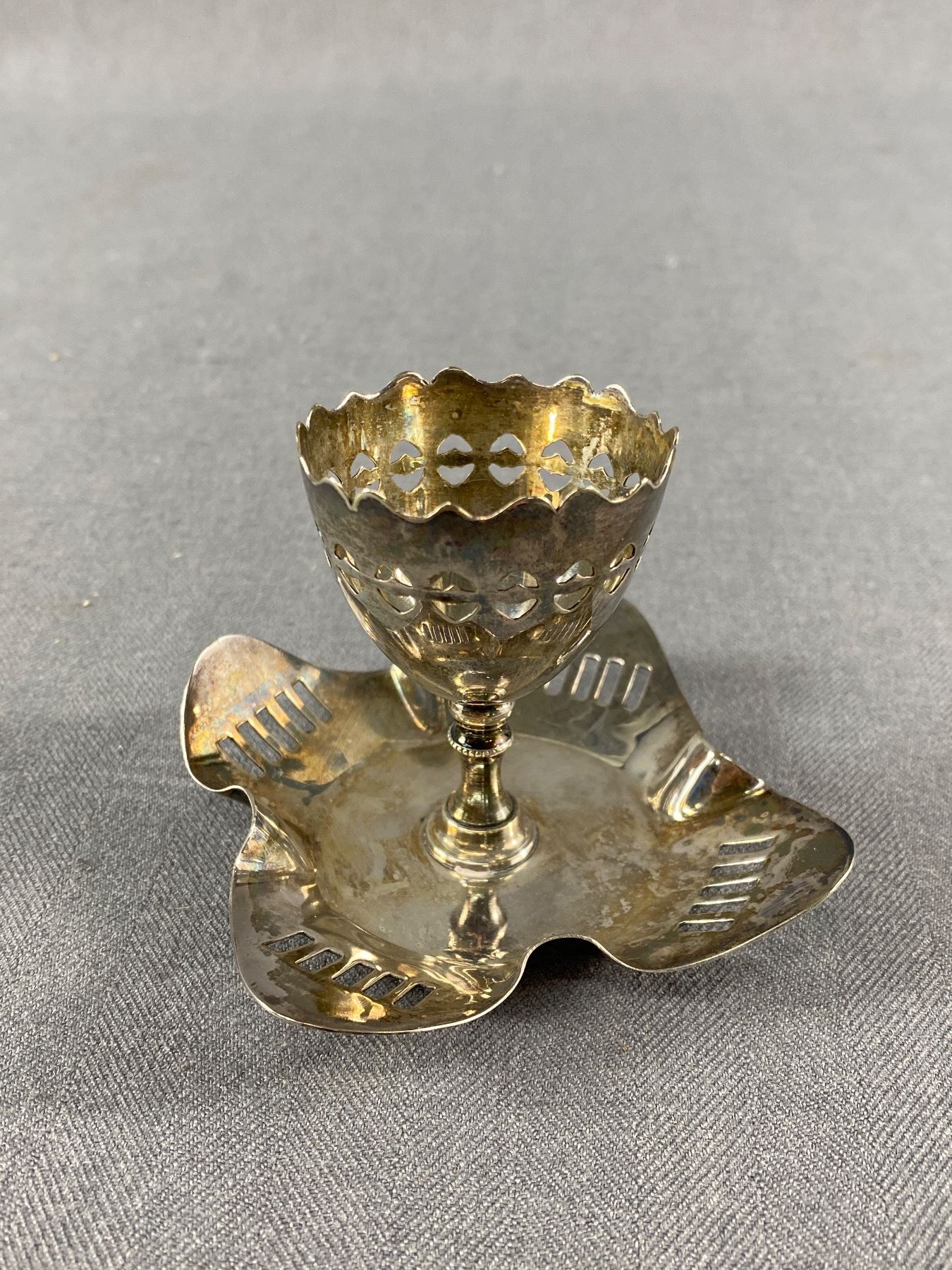 Pretty Antique Silver Plated Egg Cup w/ Attached Underplate - 53.8g