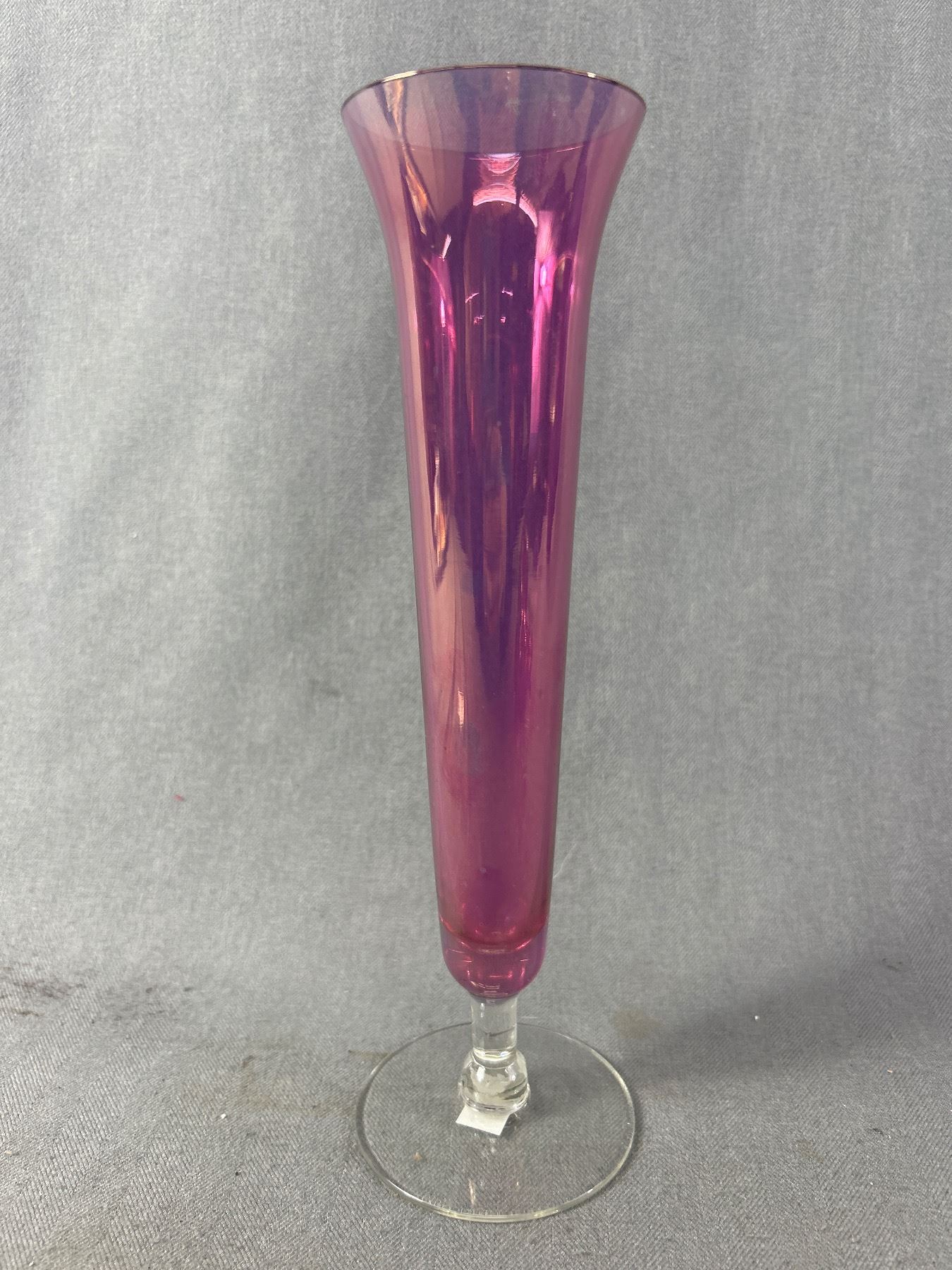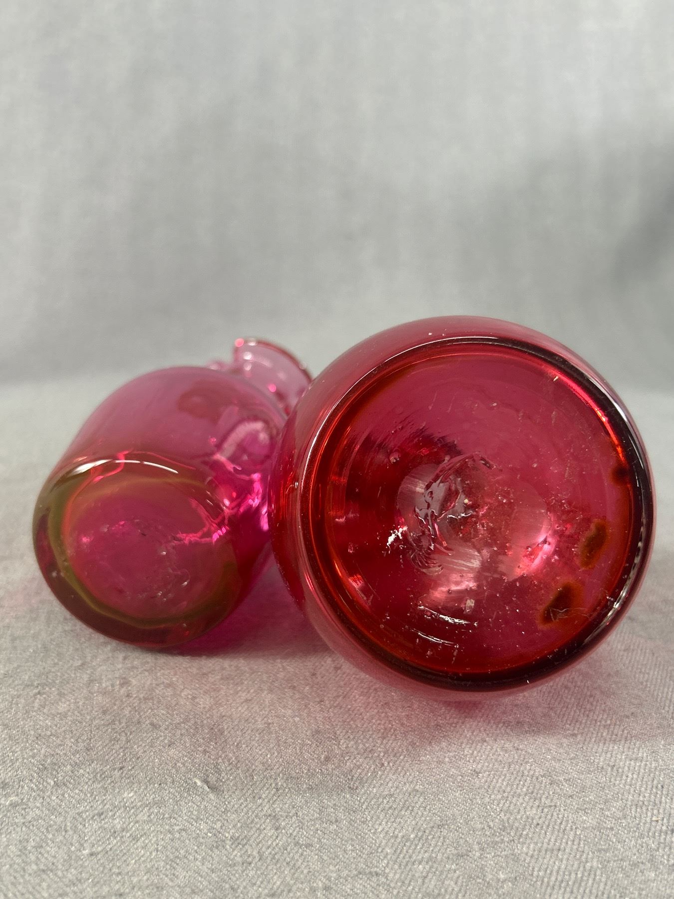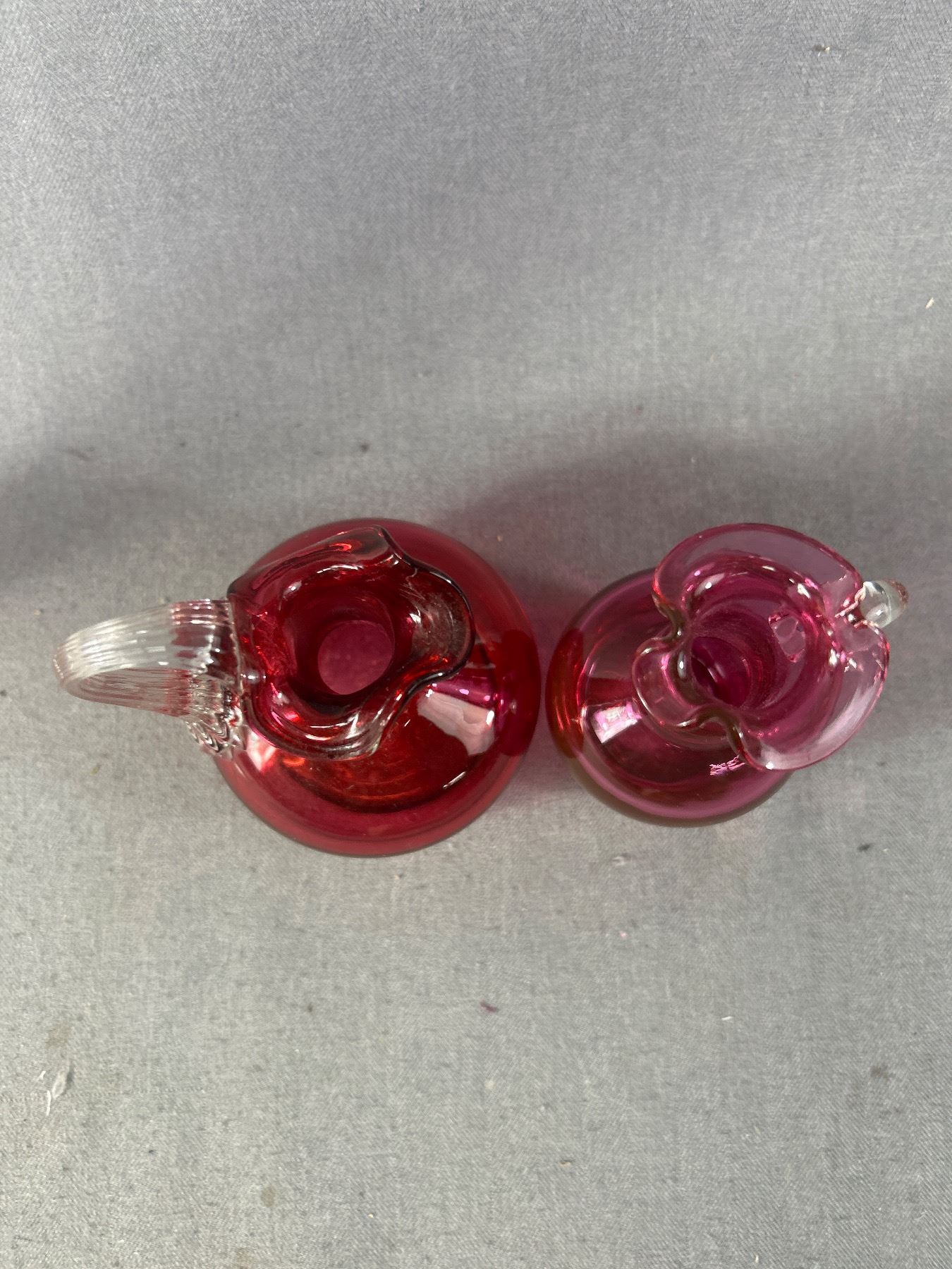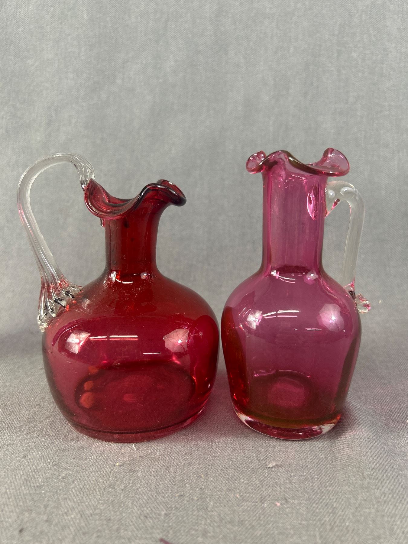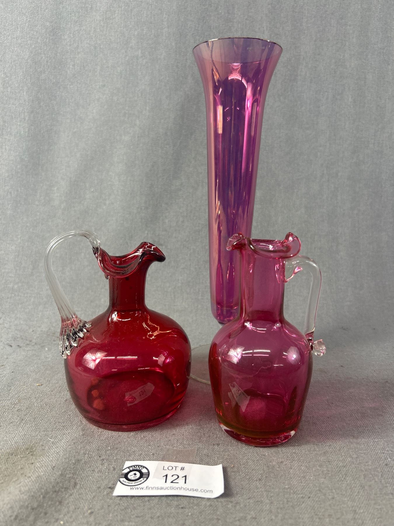 Pretty Cranberry Glass - 9.75" Bud Vase & 2 5" H Vinegar Pitchers