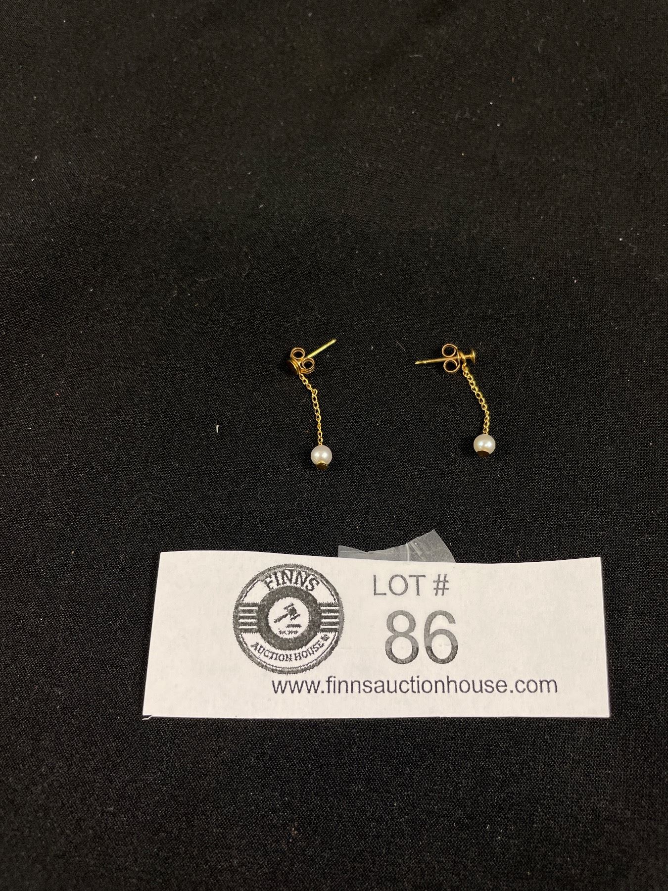 Pretty Pair of 14k Gold & Pearl Dangle Earrings