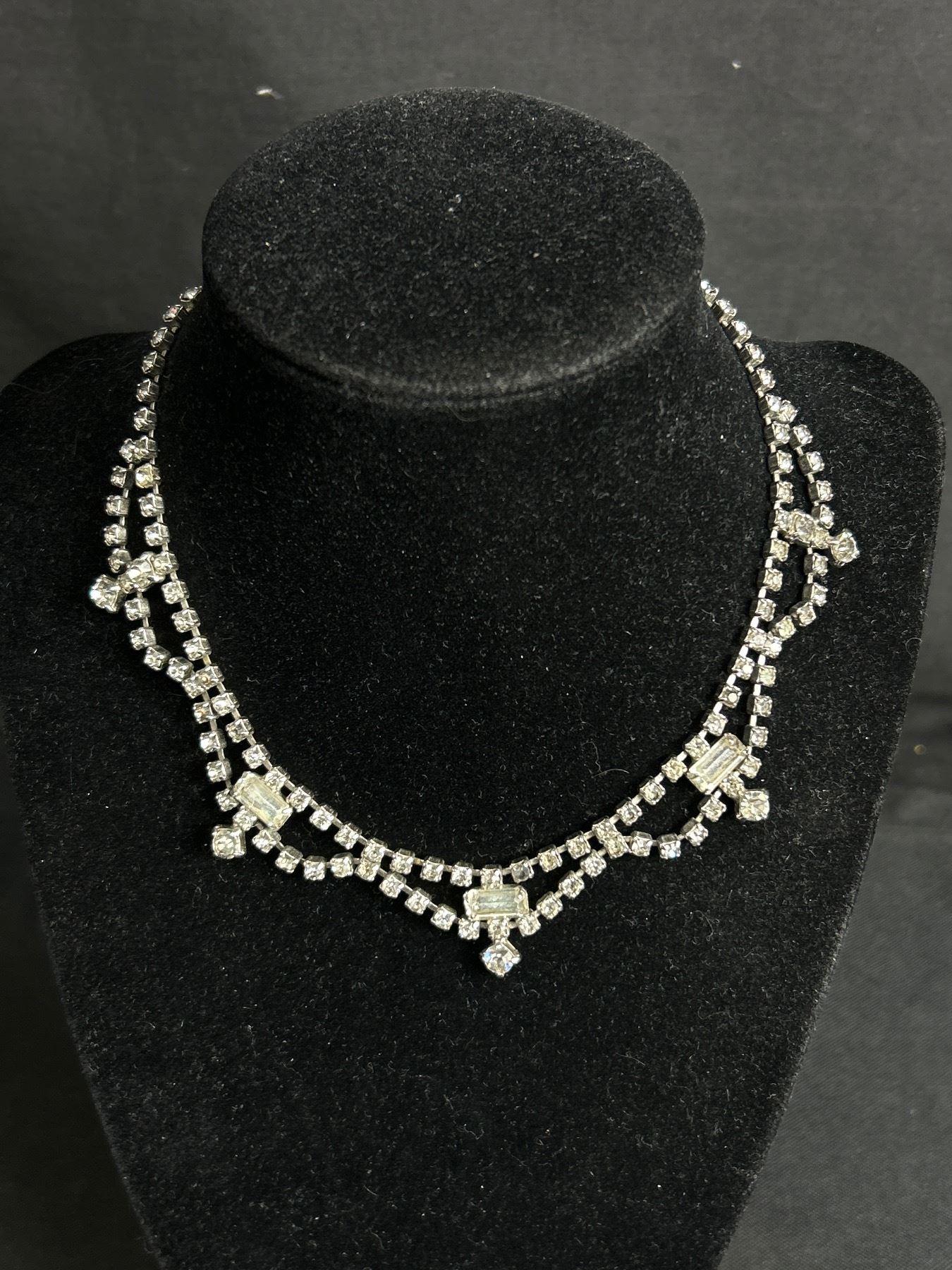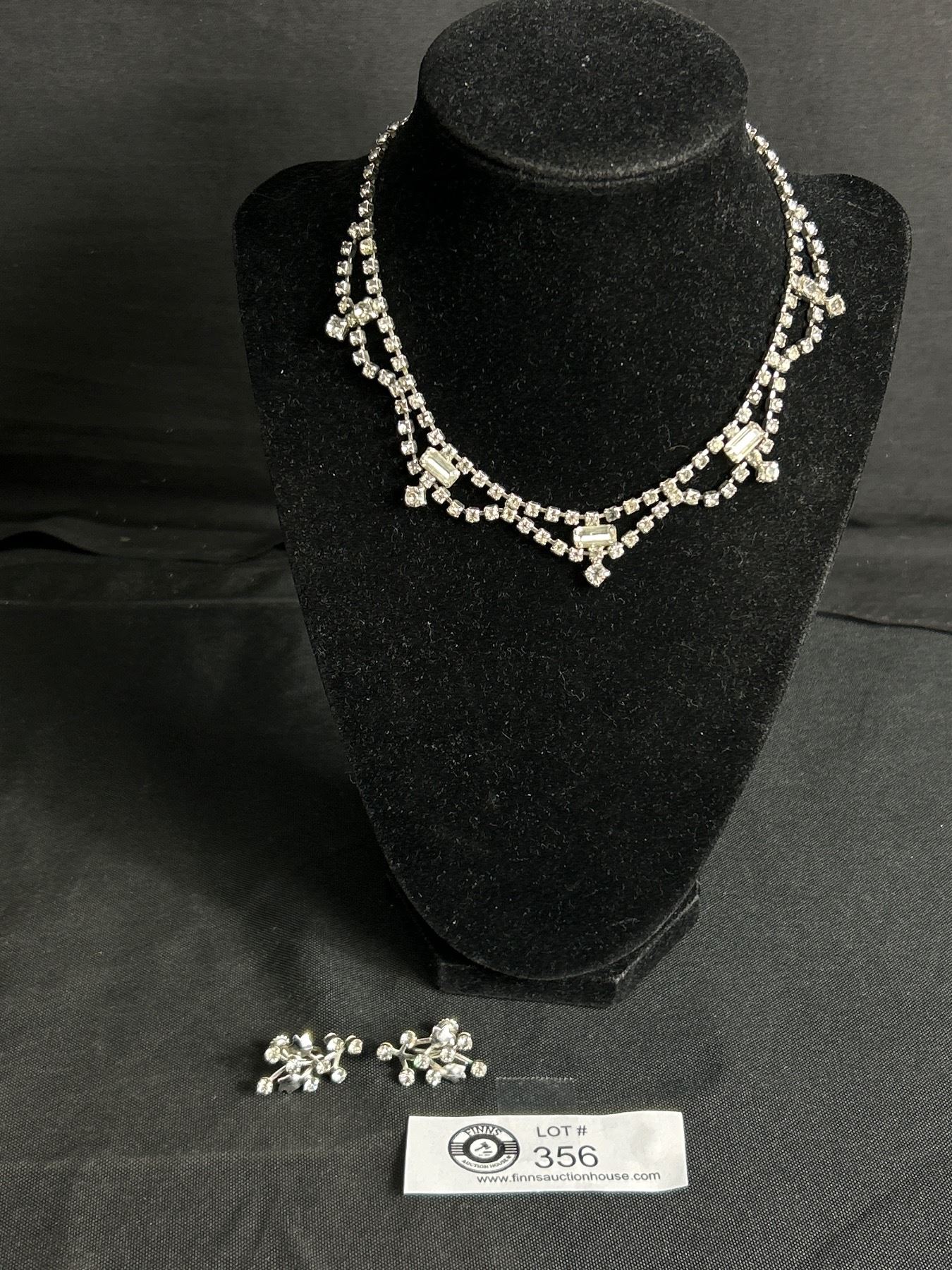 Pretty Rhinestone Necklace Choker Plus Rhinestone Earrings