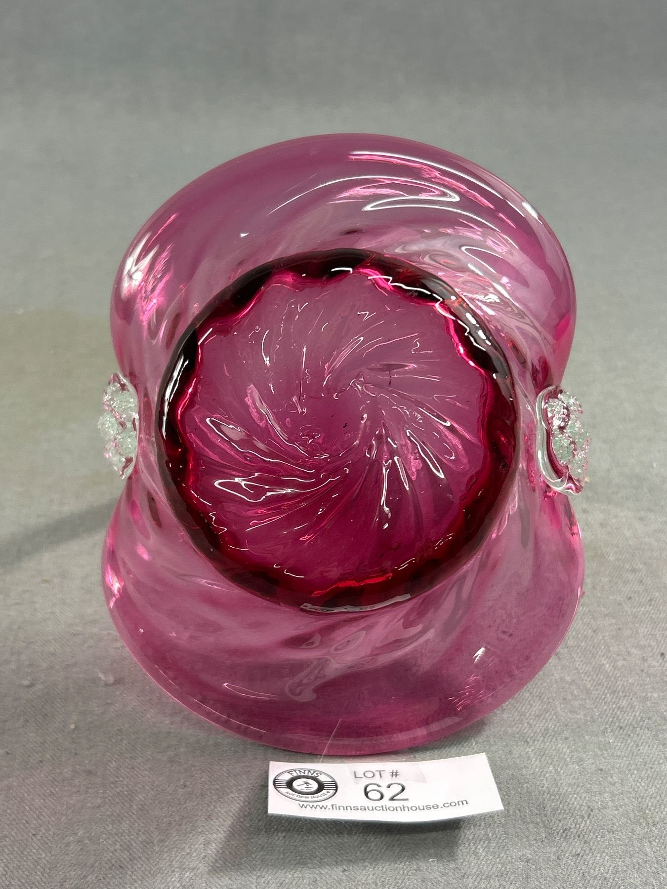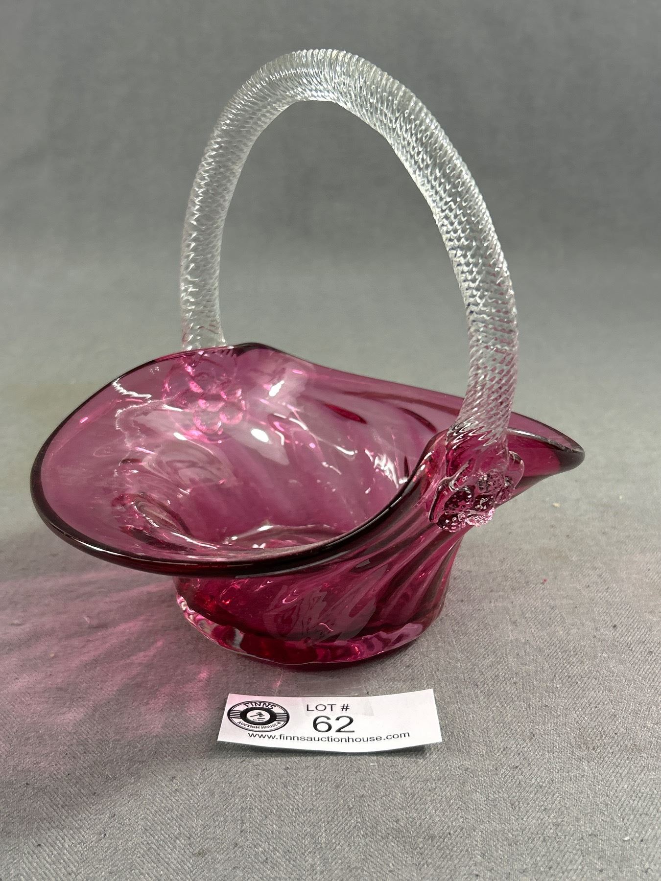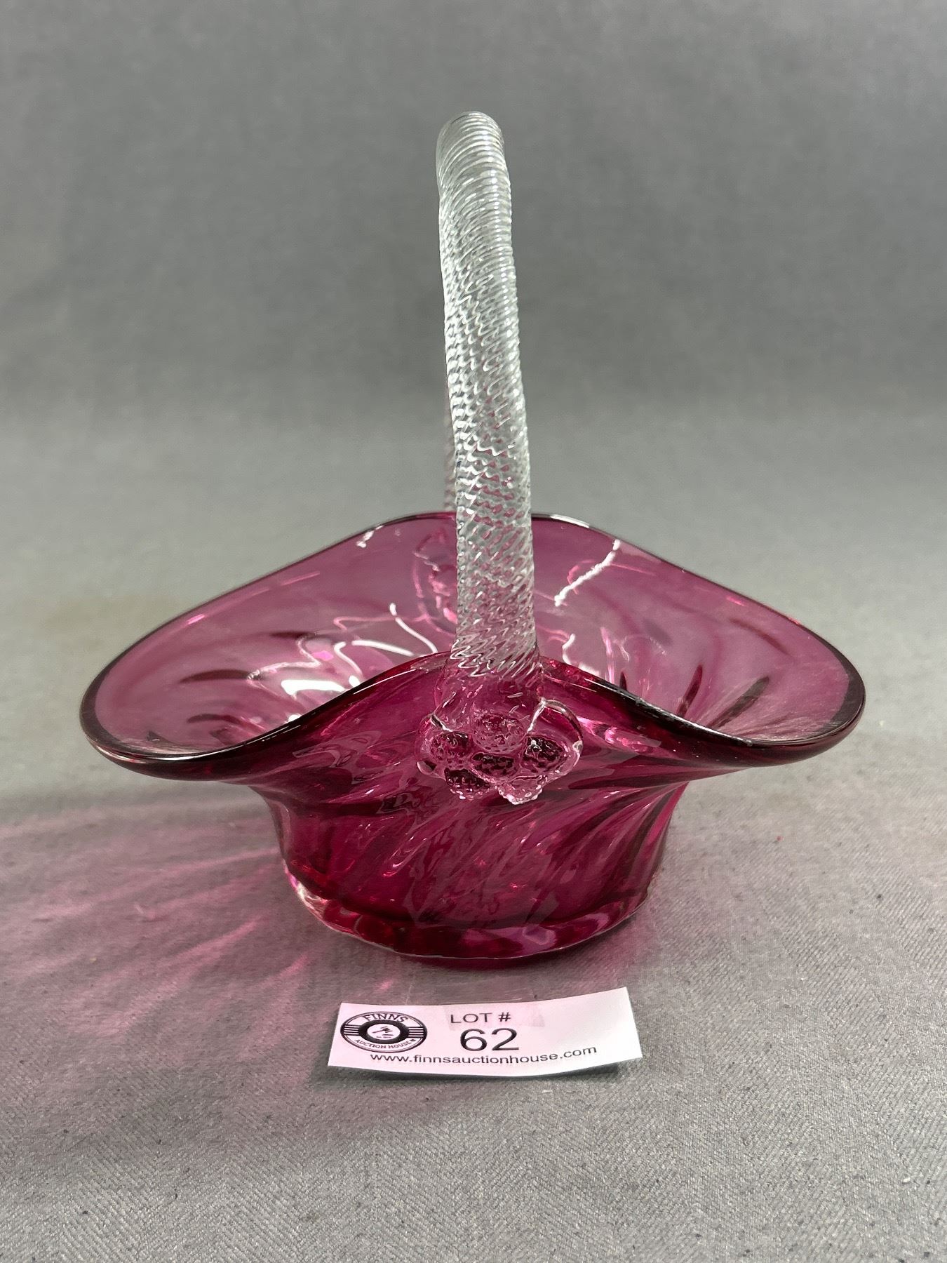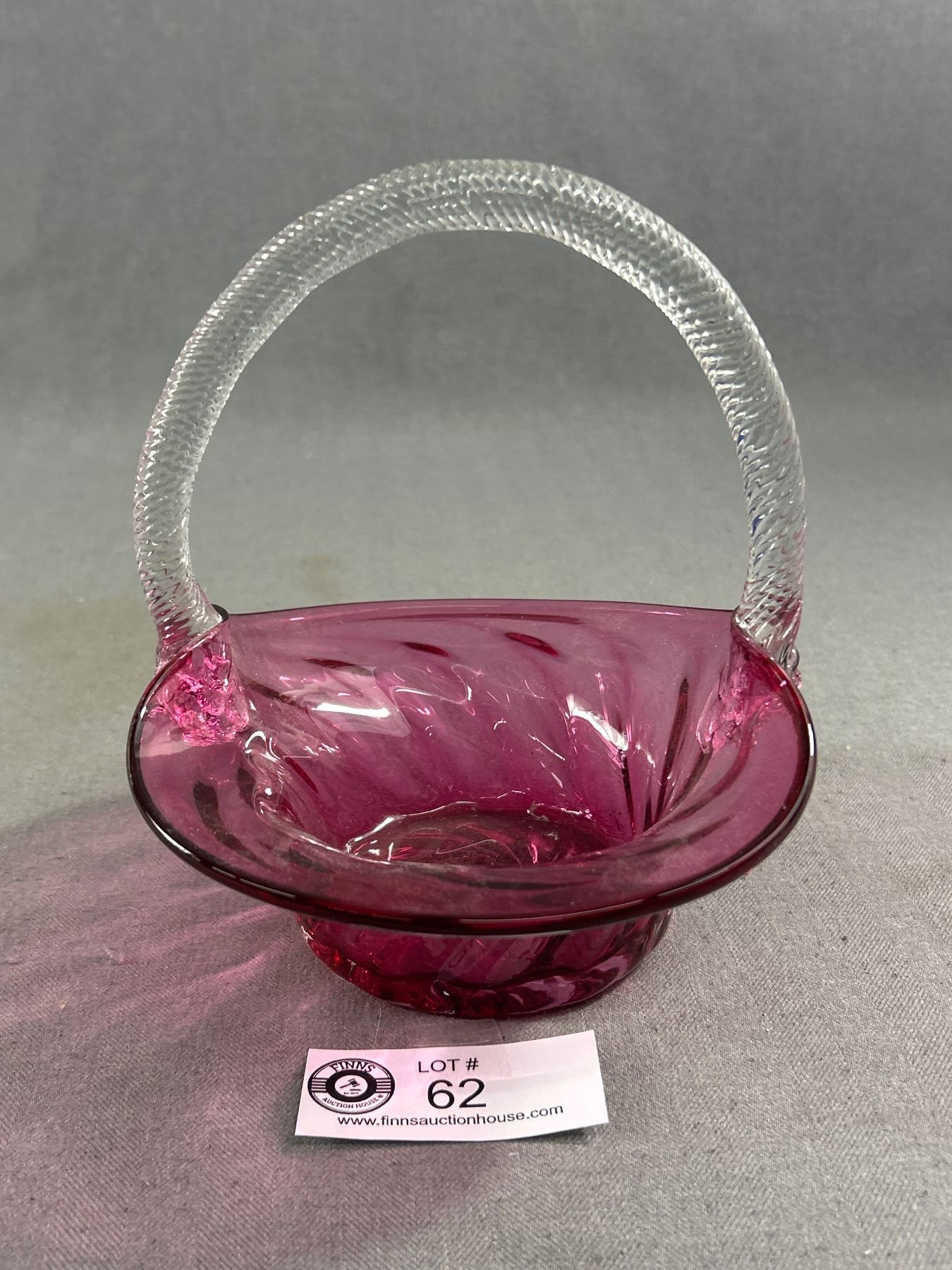 Pretty Vintage Cranberry Glass Basket w/ Clear Handle. Approx. 7"H