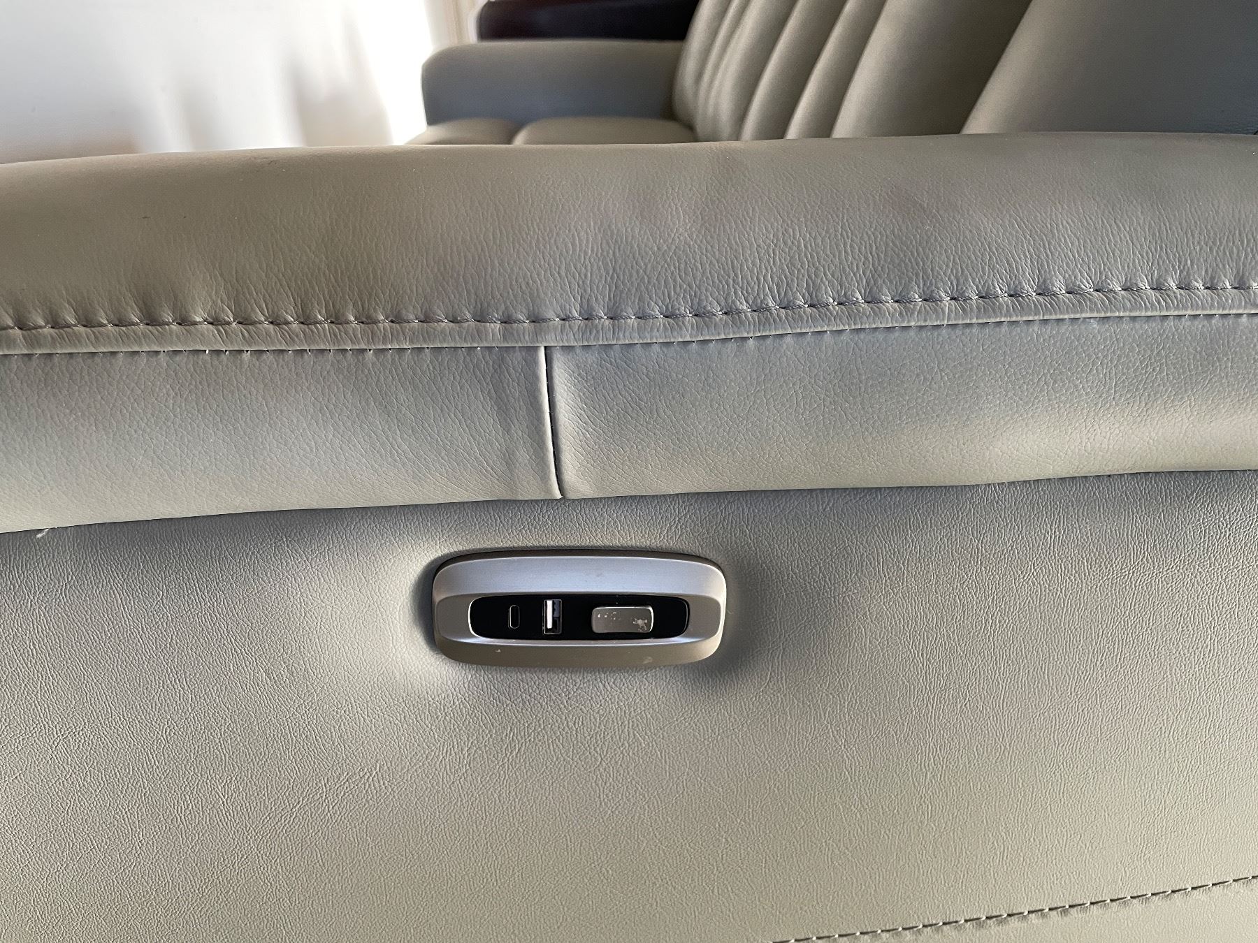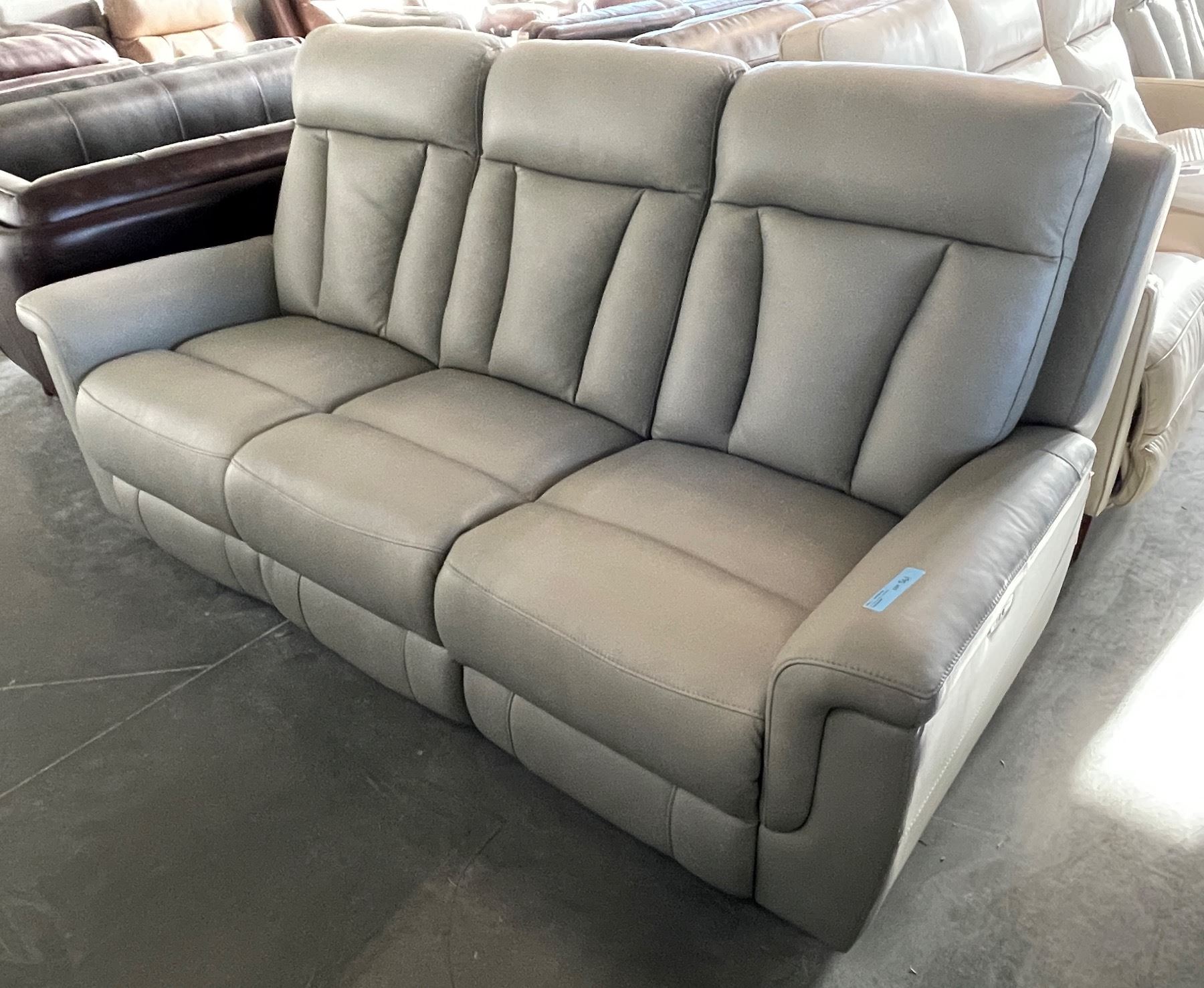 Prospera Home Grey Leather Triple-Seat Power Reclining Sofa
