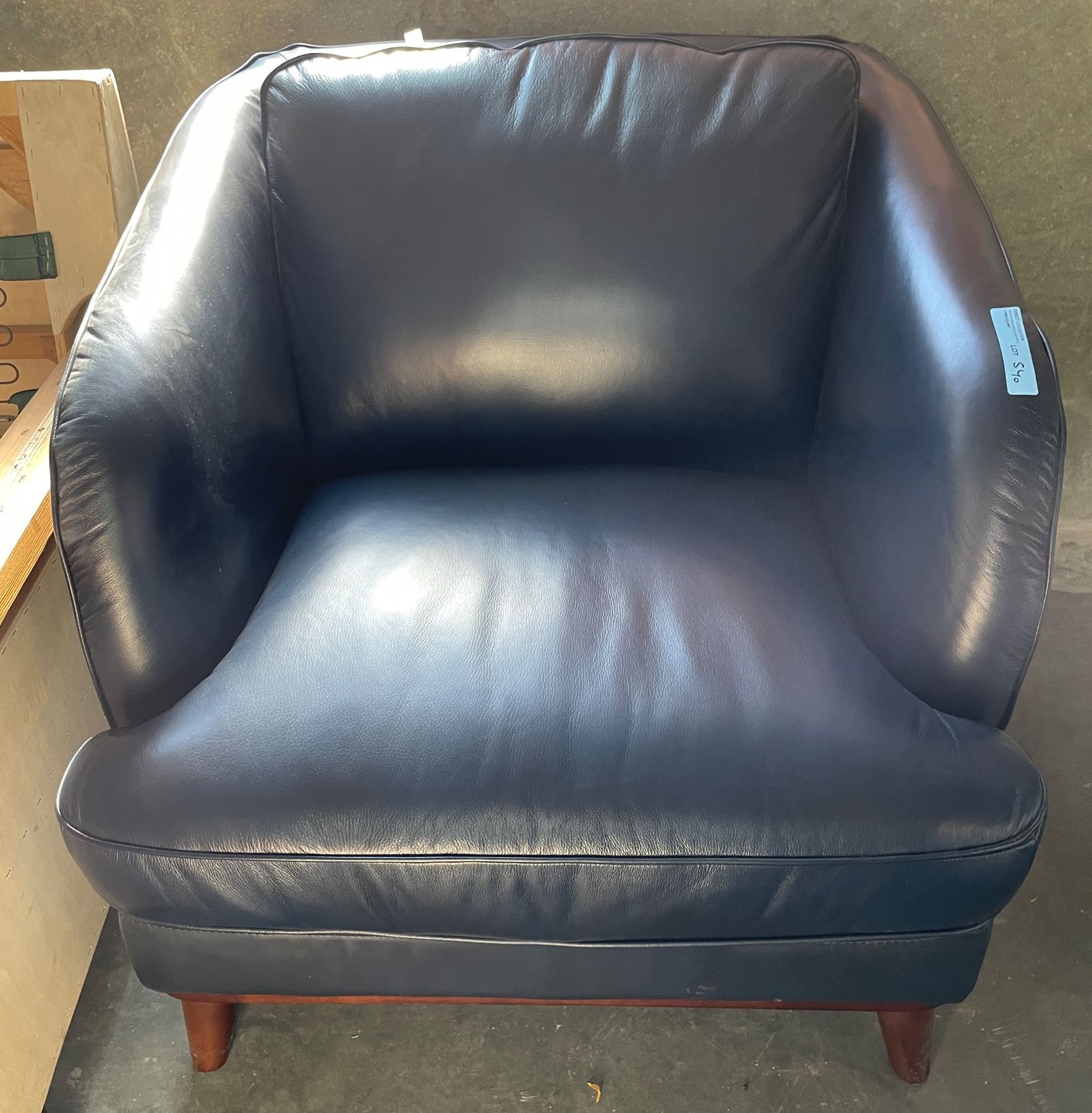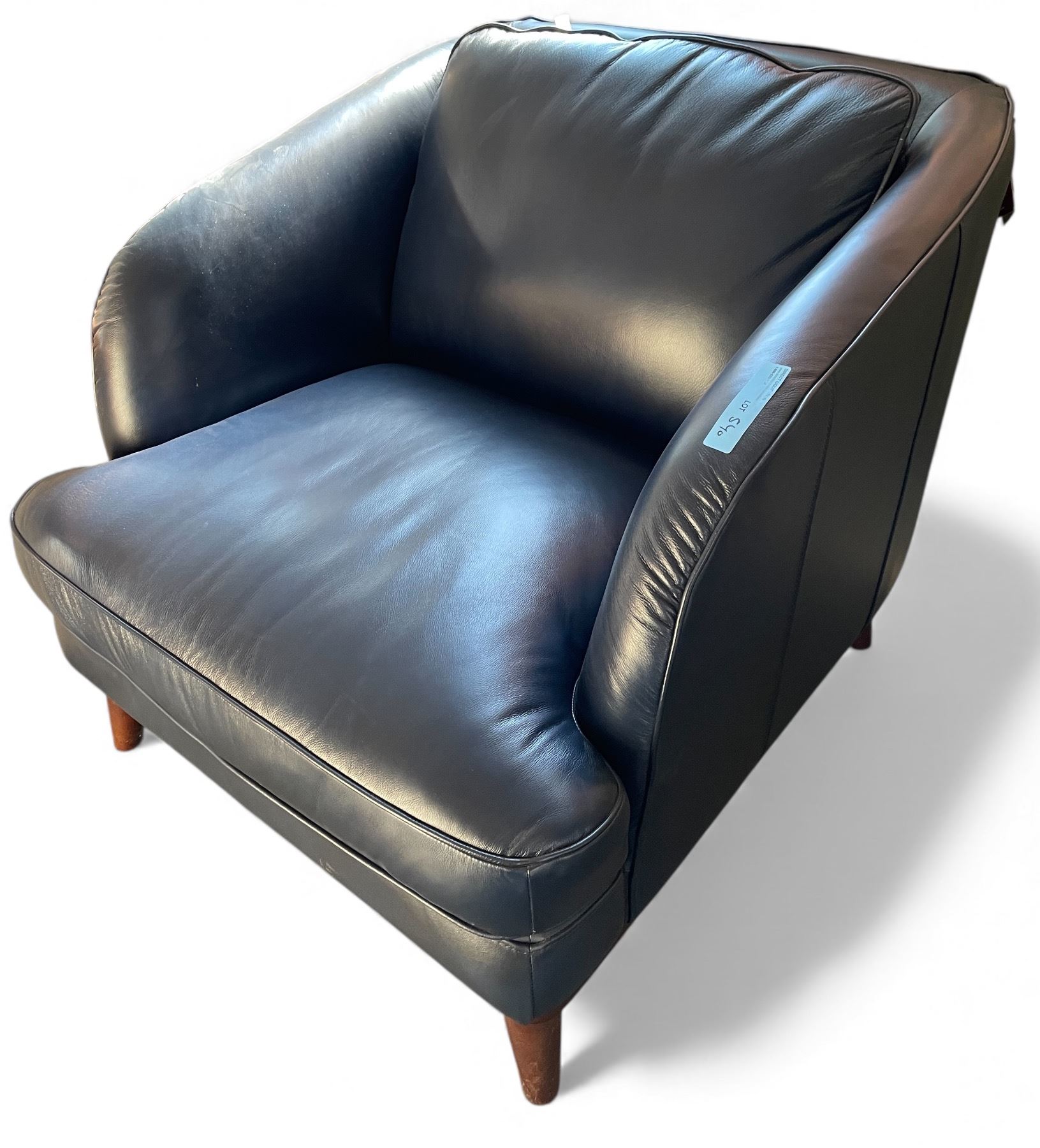 Prospera Home Modern Navy Leather Lounge Chair w/Walnut Legs