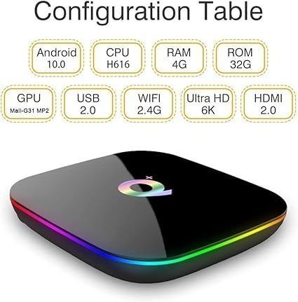 - Q Plus Android 10.0 TV Box 4GB RAM 32GB ROM, Android Box H616 Quad-core WiFi 2.4GHz Support 6K H.265 HD 2.0 Ethernet TV Box