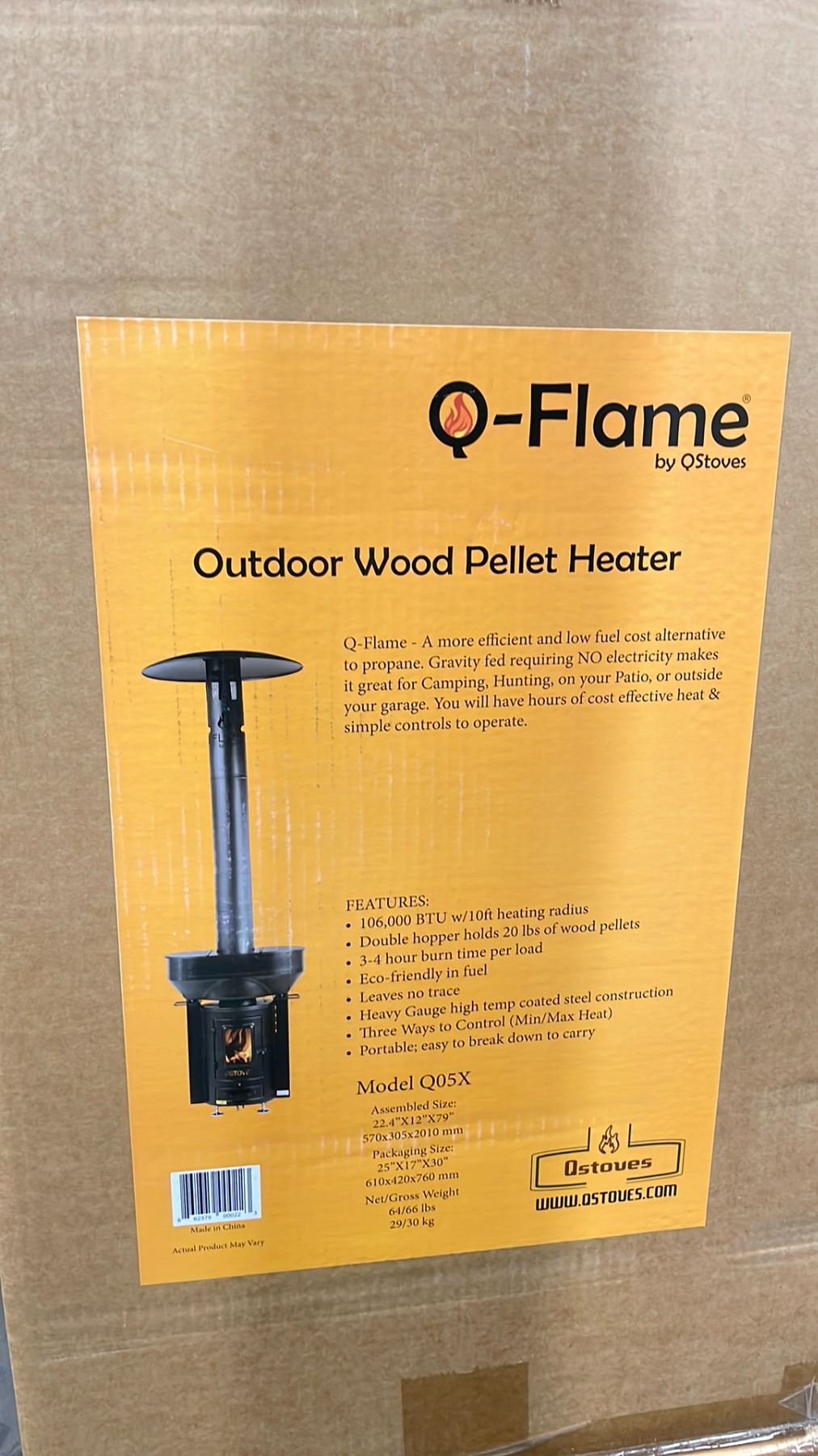 QSTOVES Q-FLAME Q05X BLACK OUTDOOR WOOD PELLET 106,000 BTU OUTPUT PATIO HEATER *IN BOX*