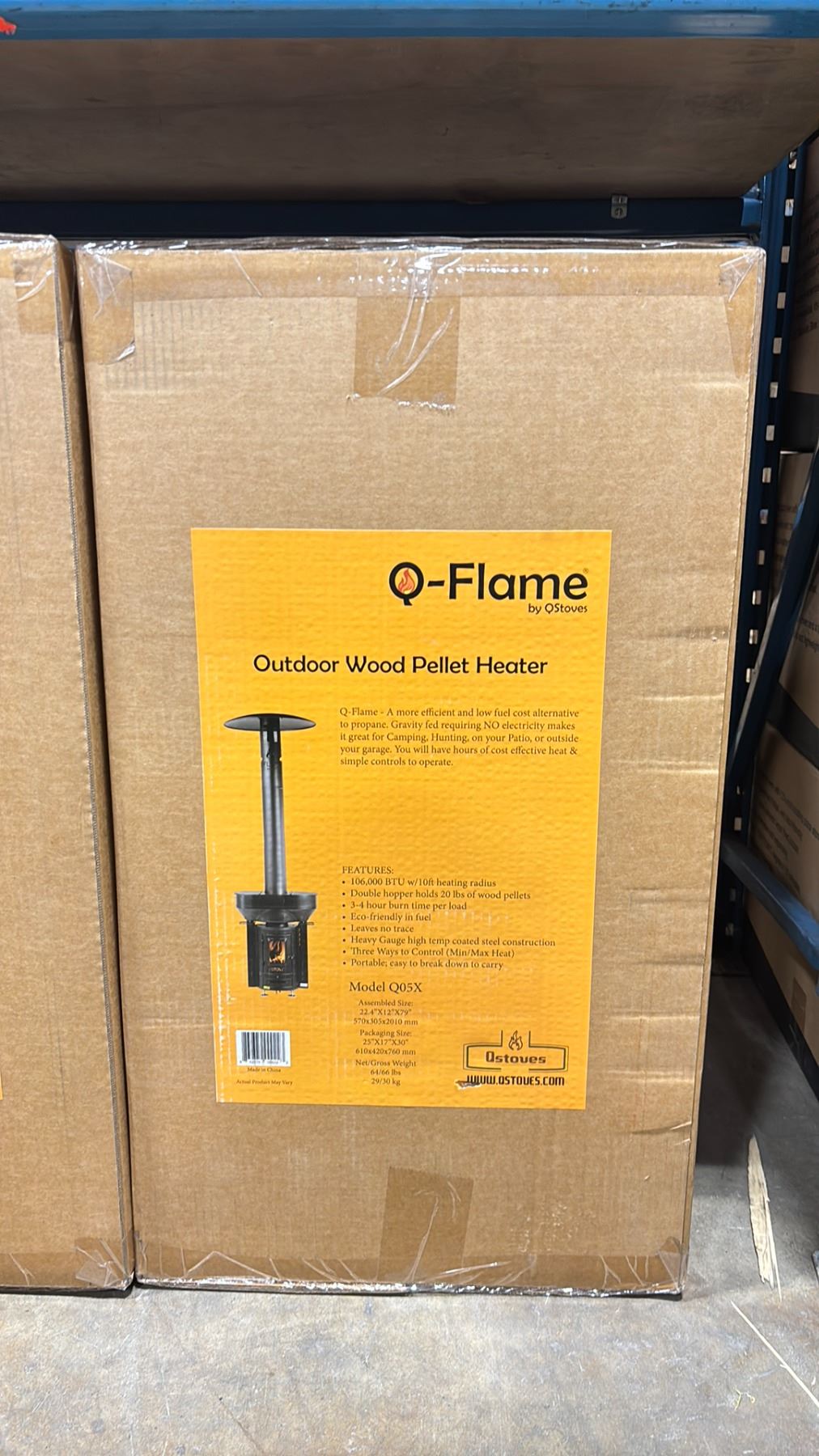 QSTOVES Q-FLAME Q05X BLACK OUTDOOR WOOD PELLET PATIO HEATER *IN BOX*