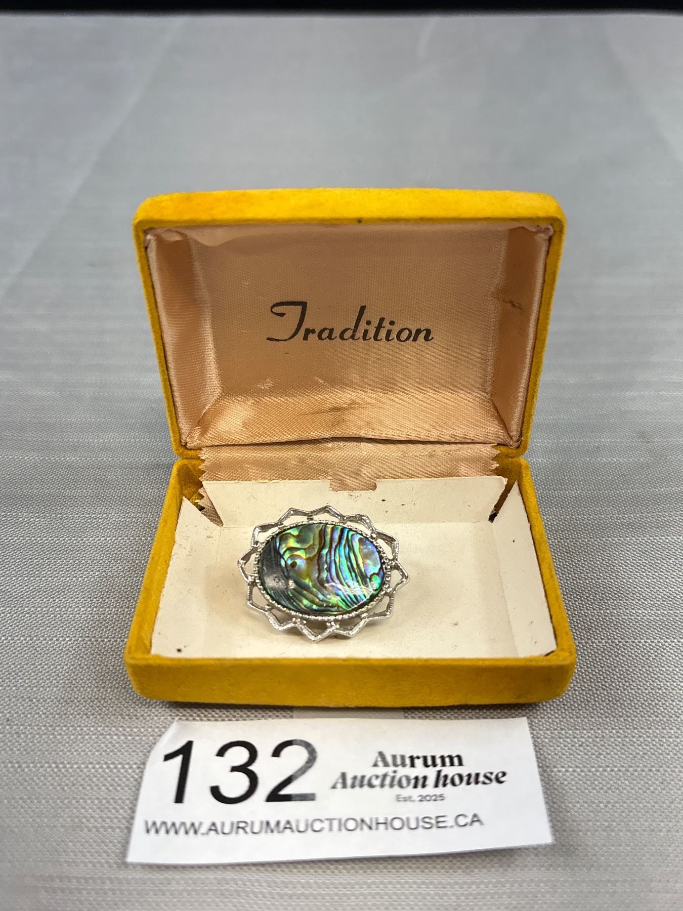 Quality C.1970 Silver Genuine Abalone Brooch Beauty!