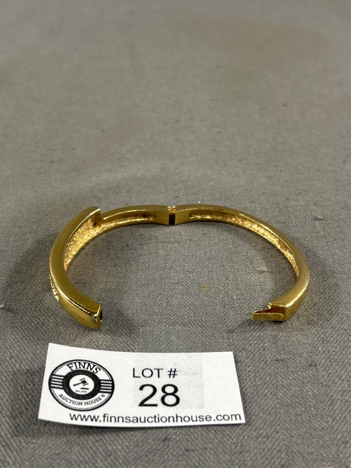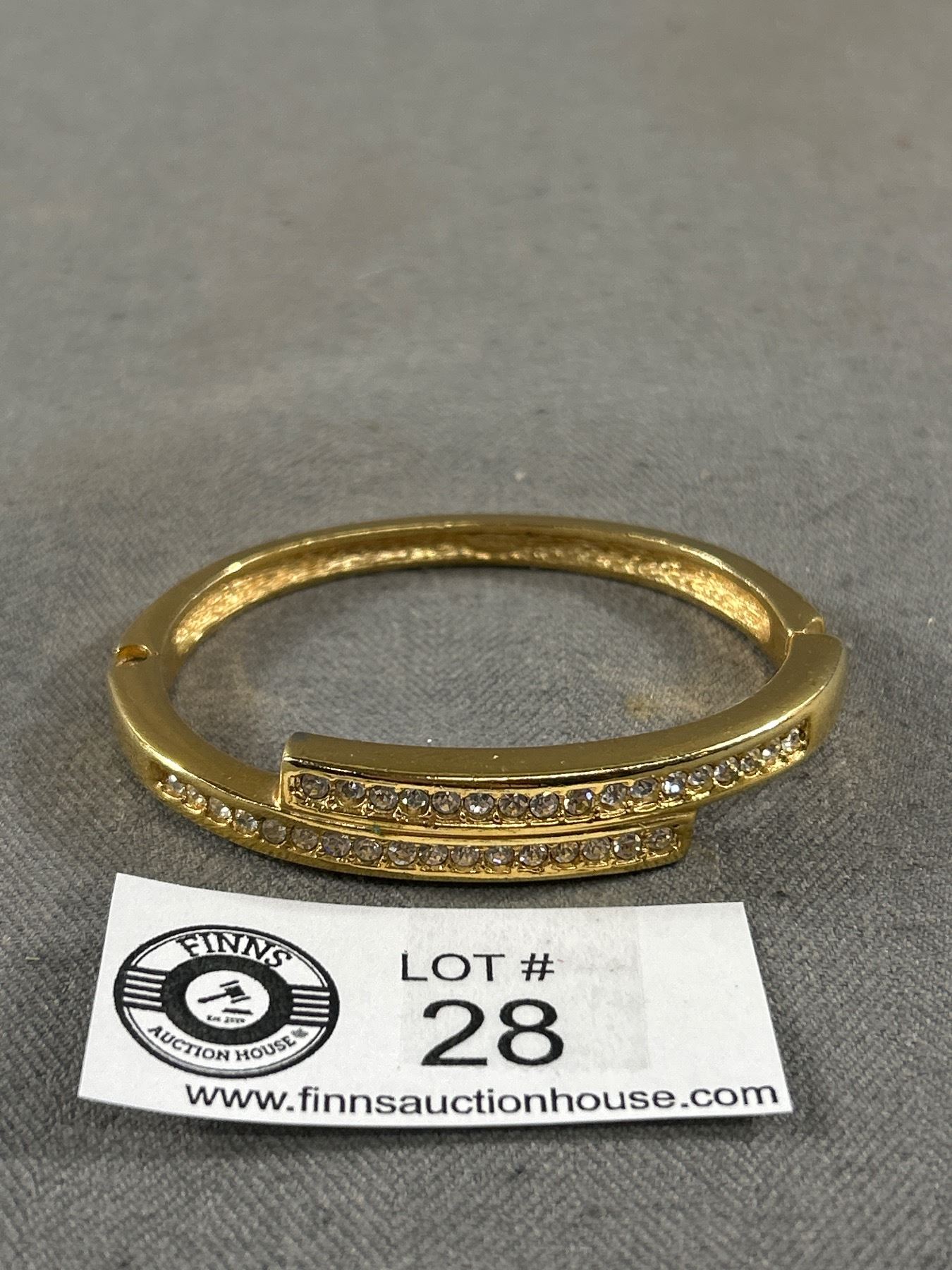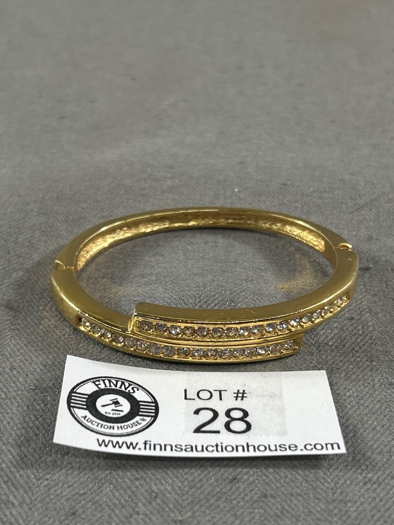 Quality Solid 10k Gold Plate Simulated Diamond Cuff Bangle