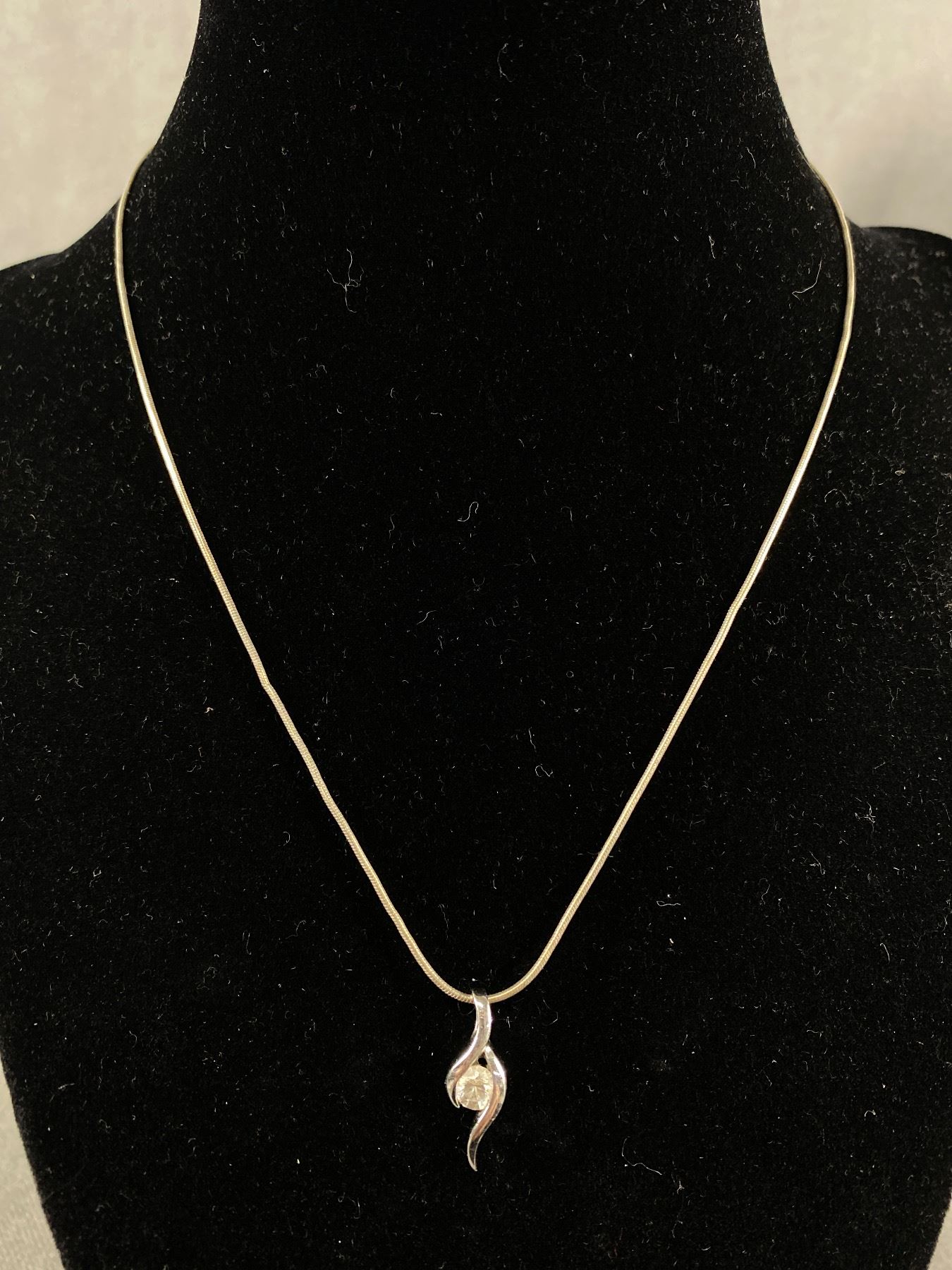 Quality Sterling Silver Necklace with Diamond Look Pendant