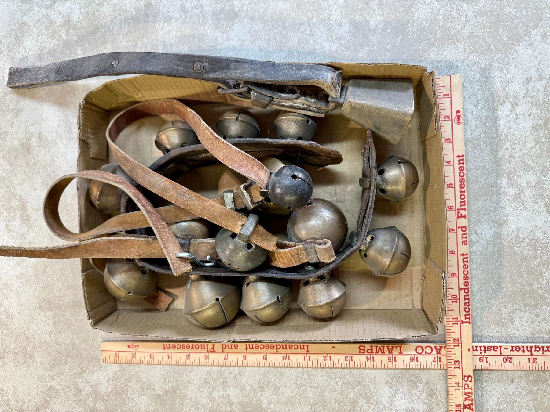 Quantity of Antique Sleigh Bells - Leather & Brass/Copper