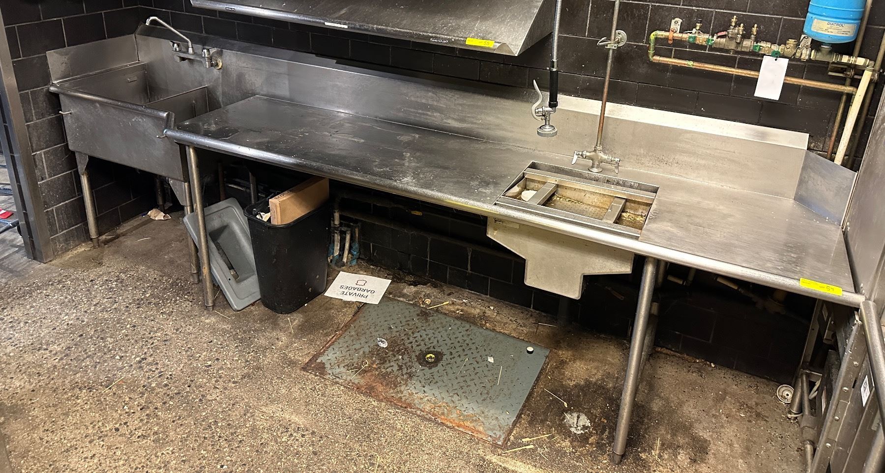 Quest - Stainless Steel Dishwashing sink w/2 compartment handwashing sink - approx. 138in x 28in