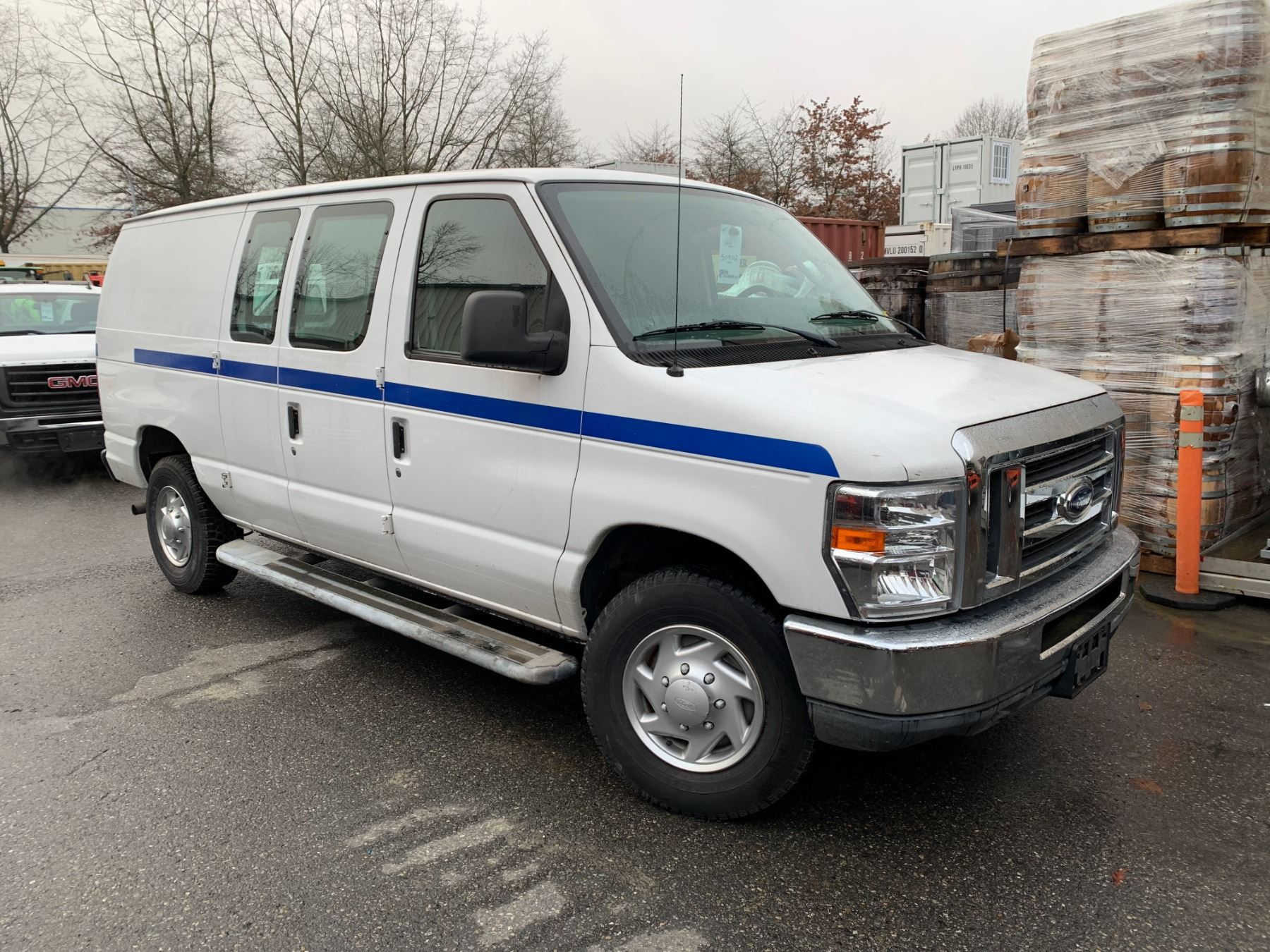 *R* 2010 FORD E-250 SUPER DUTY, 4DR CARGO VAN, WHITE, VIN # 1FTNE2EW8ADA38358 50,902MILES, GAS, AUTO, 4.6L, X-CITY, KEY, STARTS, RD, AC, SCRATCH ON PASS REAR DOOR, DENT & SCRATCH REAR FENDER, DENT ON ROOF, OOC, *HAS BC REGISTRATION* ICBC REPAIRED DEC $672.50