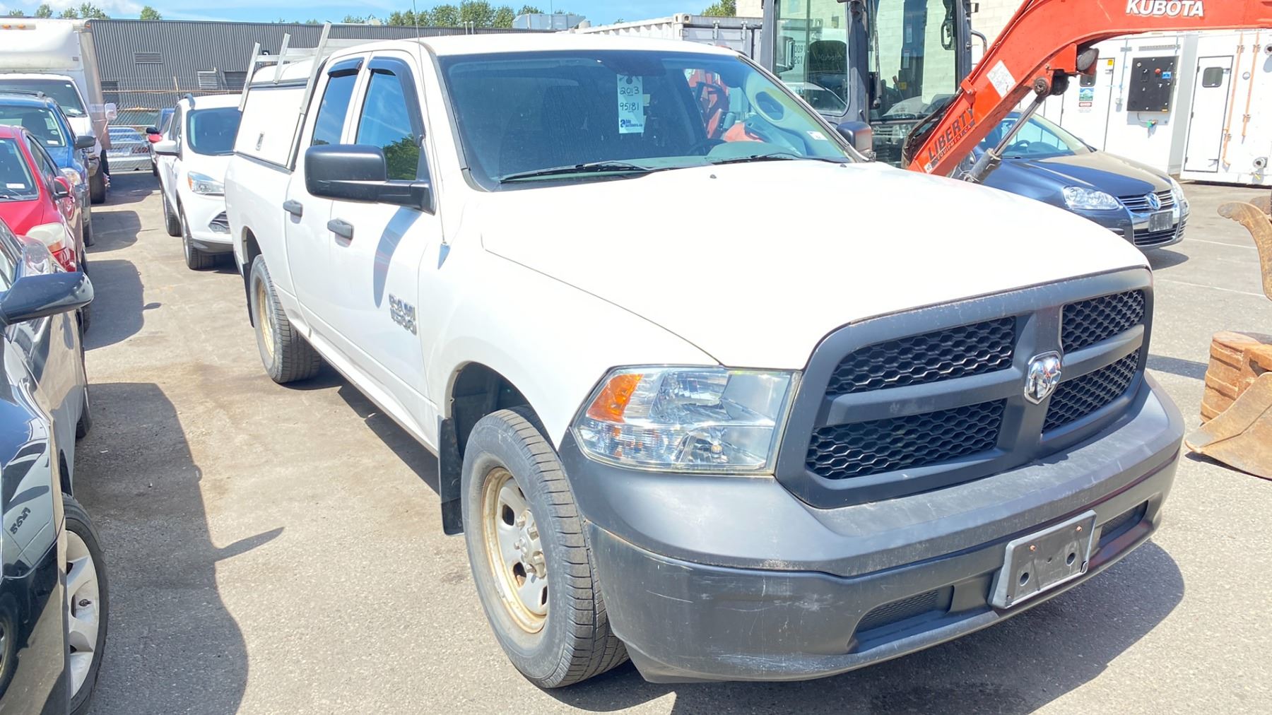 *R* 2013 DODGE RAM 1500, 4DR CREW CAB, WHITE 4.7L, GAS, 4X4 FLEX FUEL, AUTOMATIC, VIN 1C6RR7FP3DS672422, 95,181KMS, RD,PW,DV,CC,AW,PL,4W,AC,LT, HAS CANOPY, SCRATCHES FRONT BUMPER, CRACKS BEHIND PS WHEEL WELLS, NO ICBC DECLARATIONS