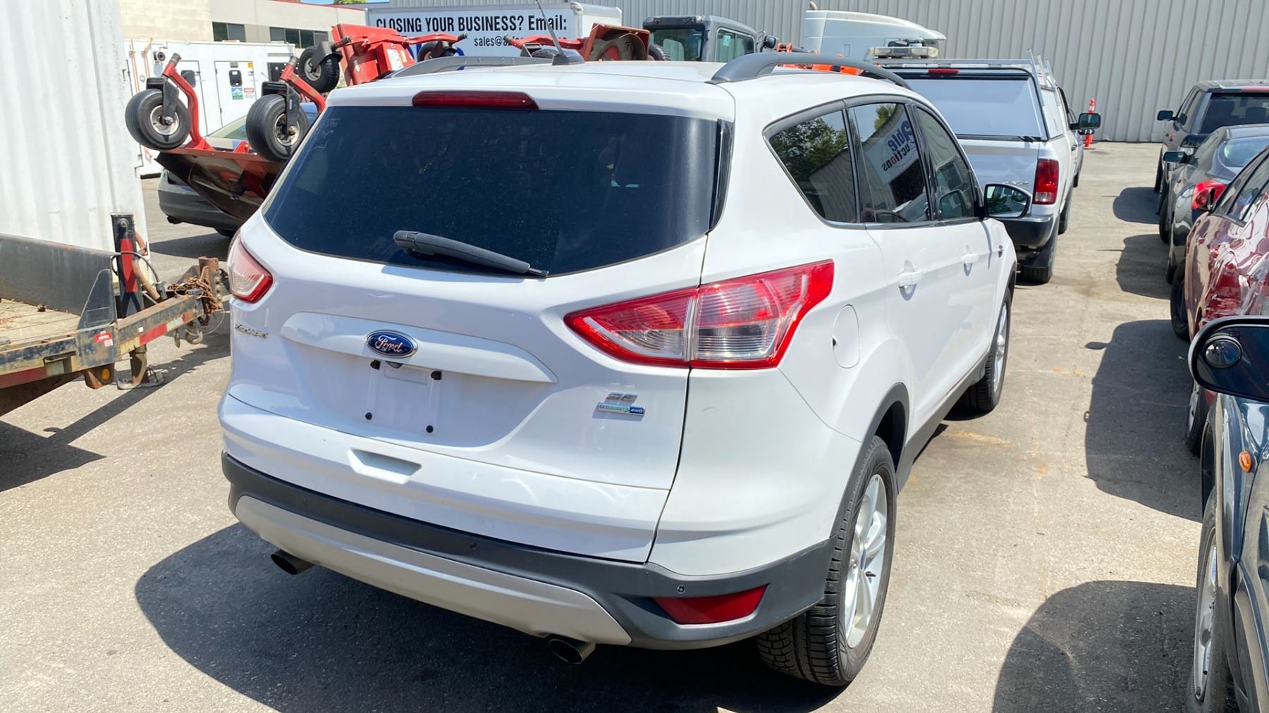 *R* 2014 FORD ESCAPE SE ECOBOOST, 1.6L, WHITE, 4DRSW, GAS, AUTOMATIC, VIN 1FMCU9GX2EUE29905, 276,729KMS, RD,CD,PW,NBC,DV,RA,CC,PS,PL,AC,LT,HS, SOME SCRATCHES ON FRONT BUMPER, OPEN RECALL #22S43 TRANSMISSION SHIFTER CABLE BUSHING, NO ICBC DECLARATIONS