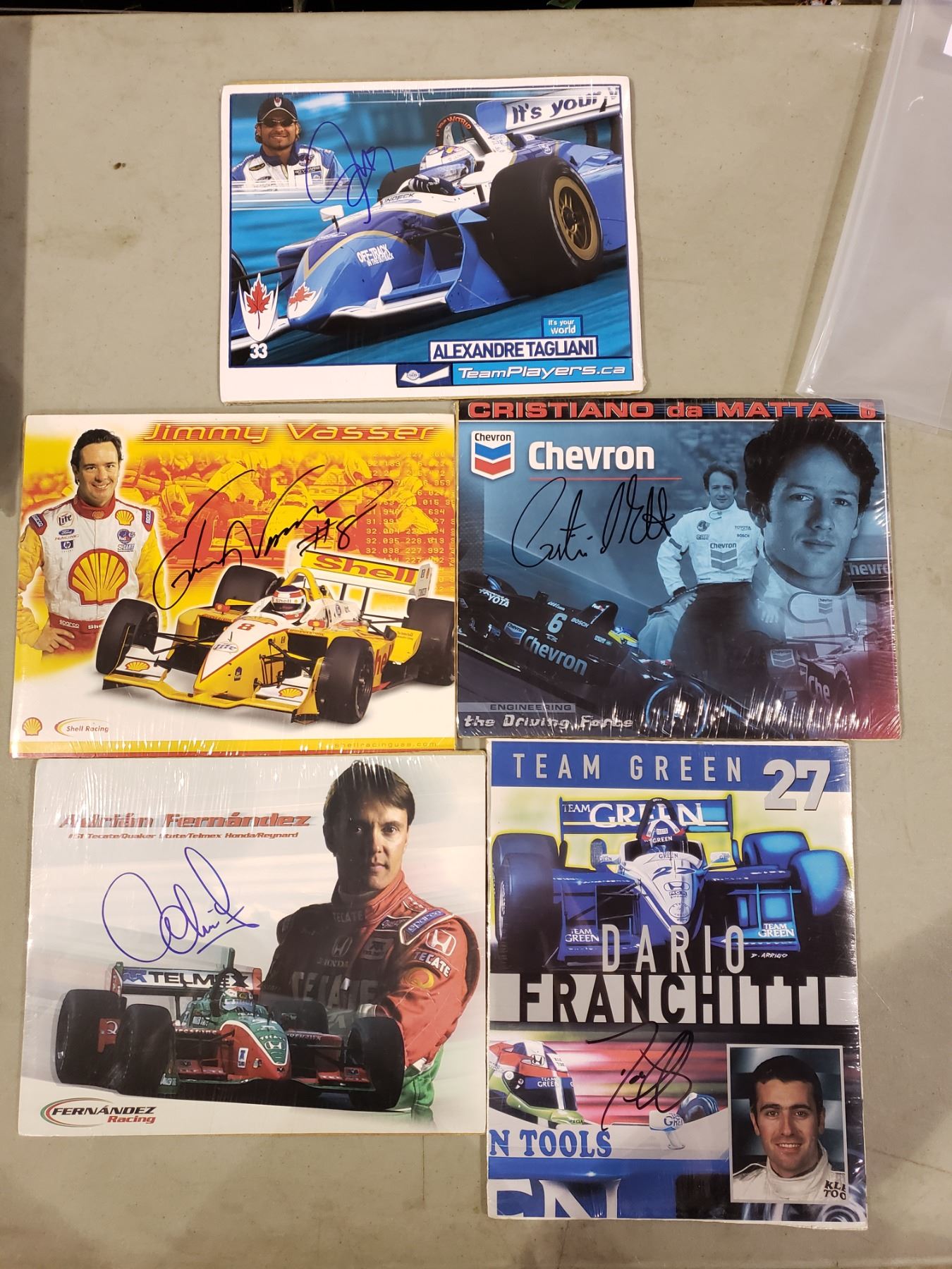 RACE CAR DRIVER AUTOGRAPHS (5) - INCLUDES PICTURES SIGNED BY JIMMY VASSER, ALEXANDRE TAGLIANI, CHRISTIANO DA MATTA, ADRIAN FERNANDEZ AND DARIO FRANCHITTI. EXCELLENT CONDITION