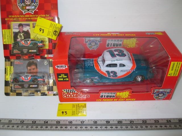 RACING CHAMPIONS 1:24 SCALE DIE CAST REPLICA 1940 FORD COUPE STOCK CAR & 2 1:64 SCALE