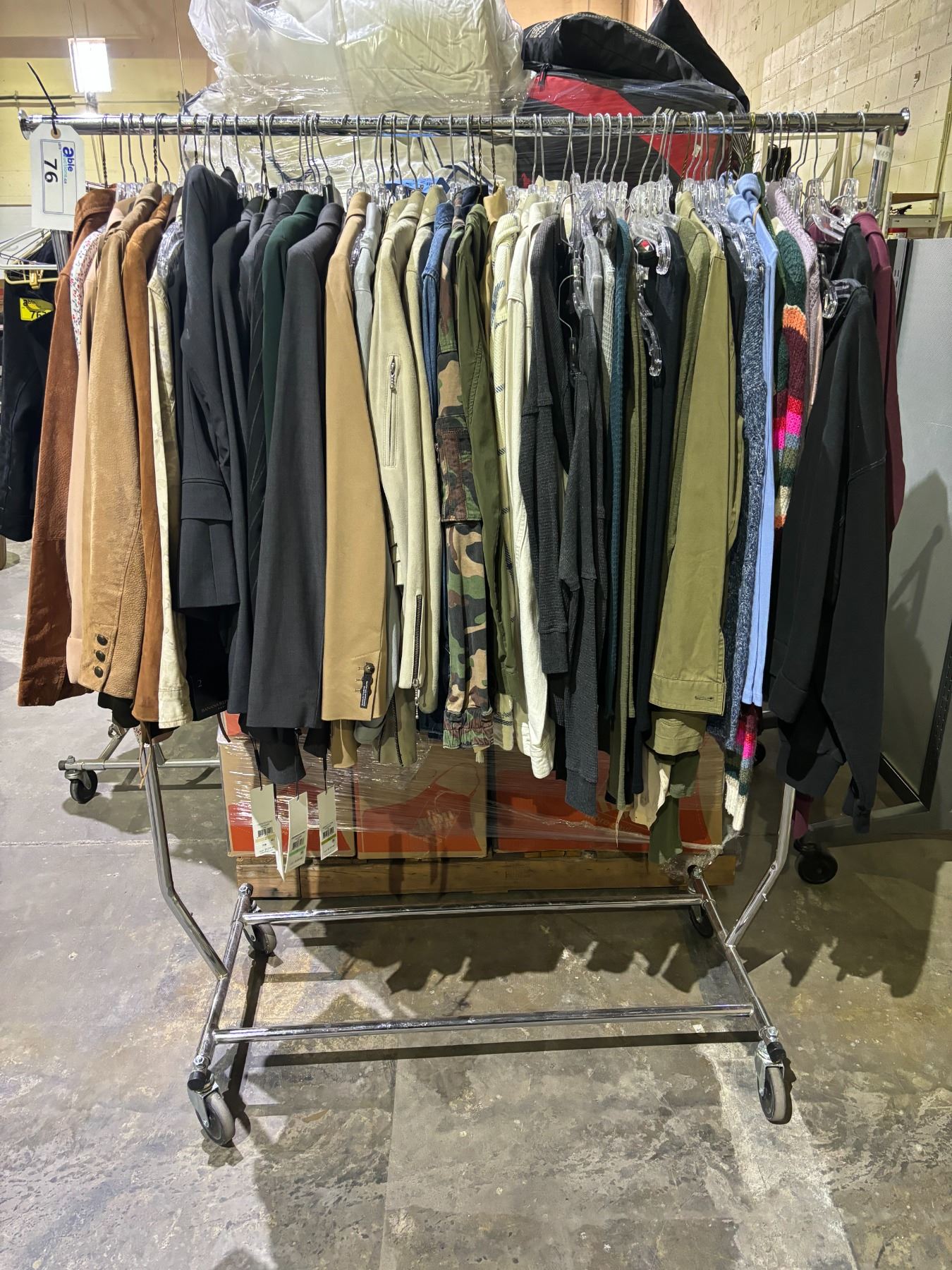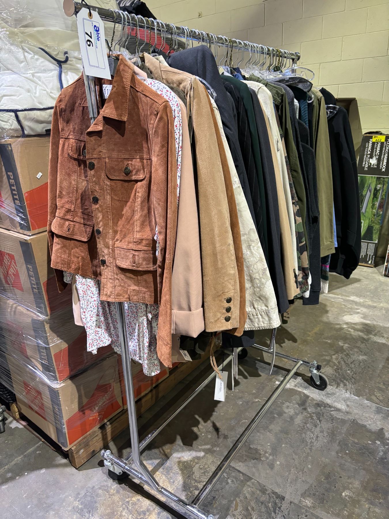 RACK OF ASSORTED CLOTHING INCLUDING; JACKETS, HOODIES, SHIRTS & MORE (RACK INCLUDED)