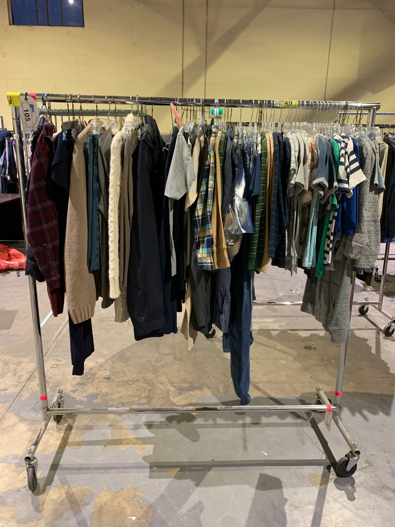RACK OF ASSORTED CLOTHING INCLUDING; VESTS, SWEATERS, T-SHIRTS & MORE (RACK NOT INCLUDED)