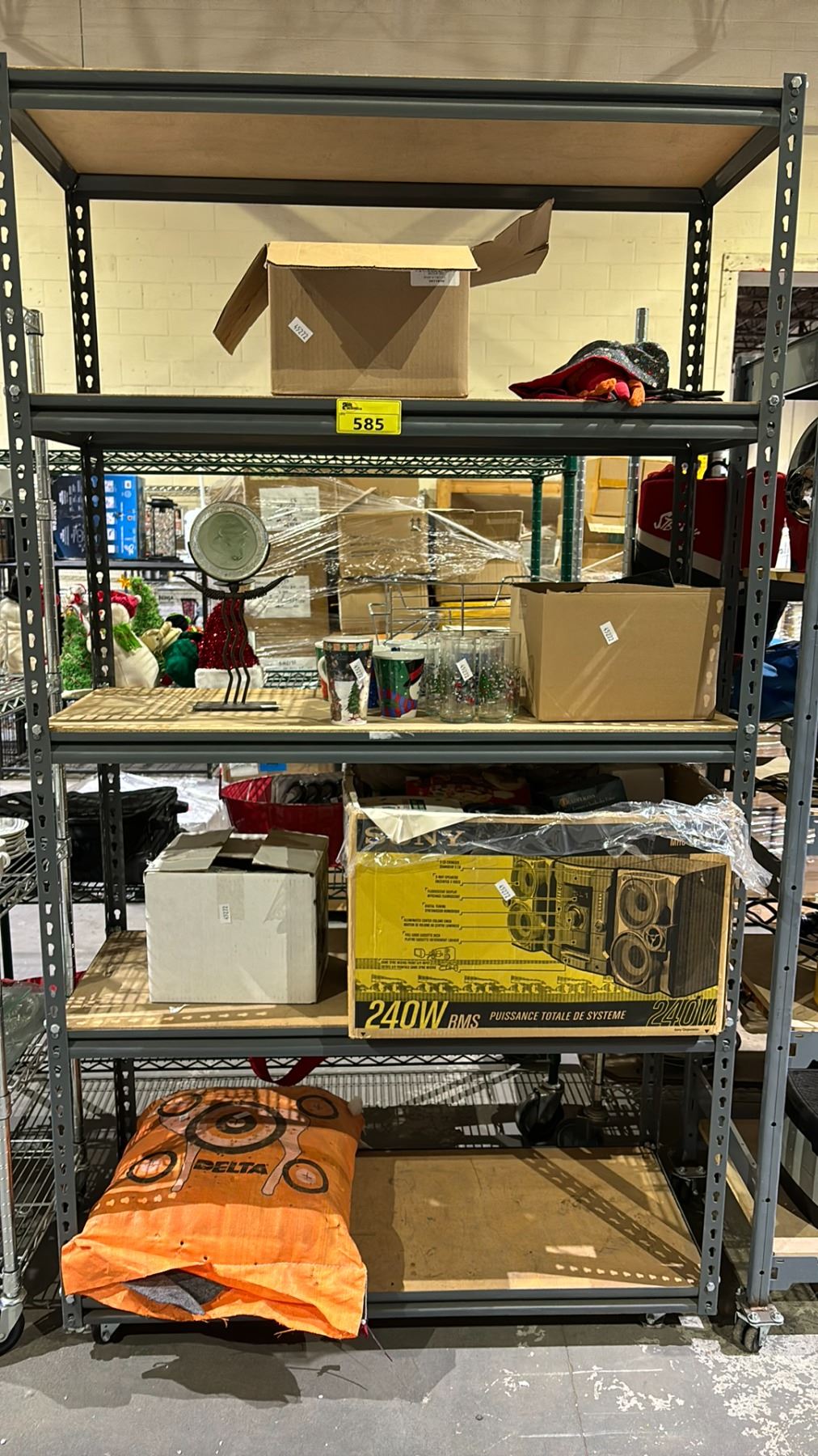 RACK OF ASSORTED ITEMS INCLUDING; PRACTICE TARGET, MUGS, GLASSES, CANDLE HOLDER AND MORE *RACK