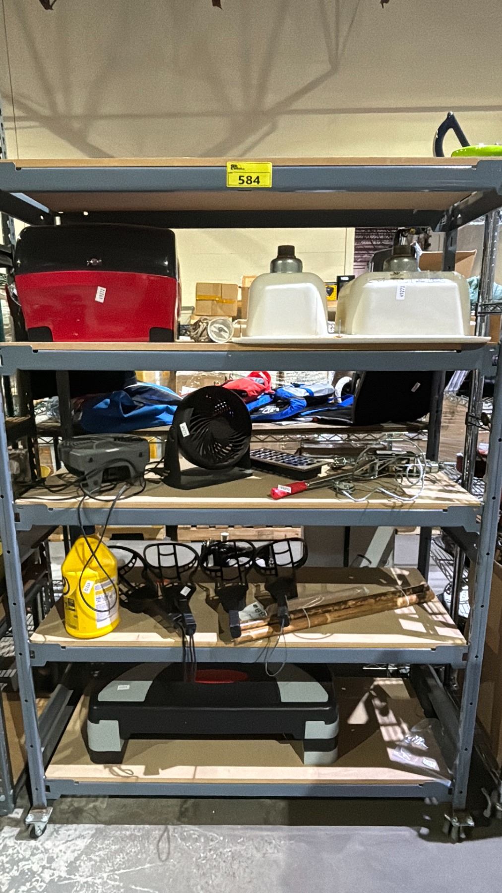 RACK OF ASSORTED ITEMS INCLUDING; SINK, STEP UP BOARD, WINCH, HONEY WELL FAN AND MORE *RACK NOT INCLUDED*