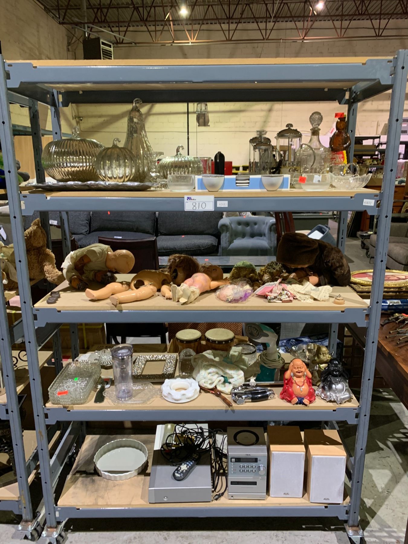 RACK OF ASSORTED ITEMS INCLUDING; TOYS, HOME DECOR, SPEAKERS & MORE (RACK NOT INCLUDED)