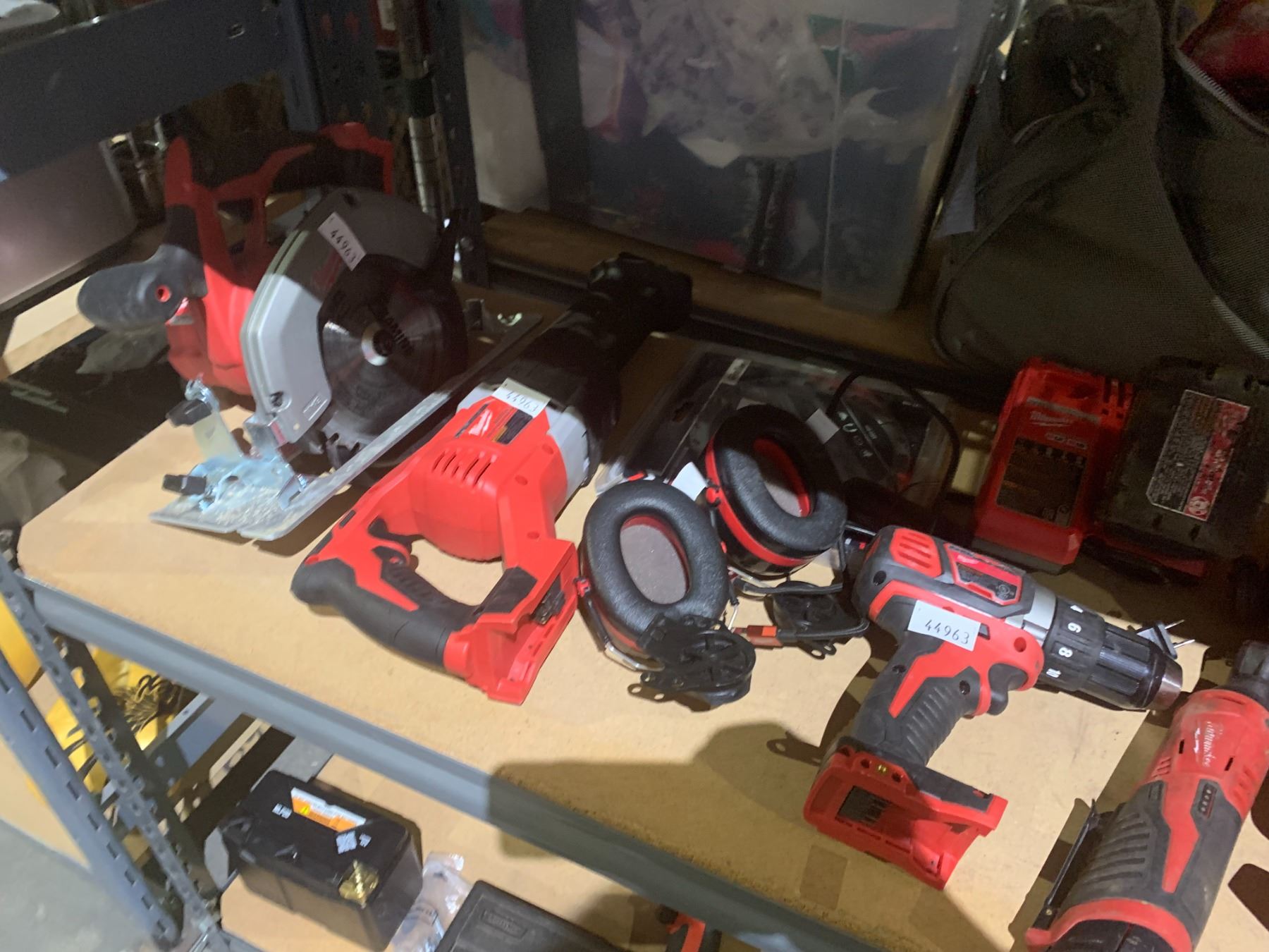 RACK OF ASSORTED TOOLS INCLUDING; CRAFTSMAN, MILWAUKEE & BOSCH (RACK NOT INCLUDED)