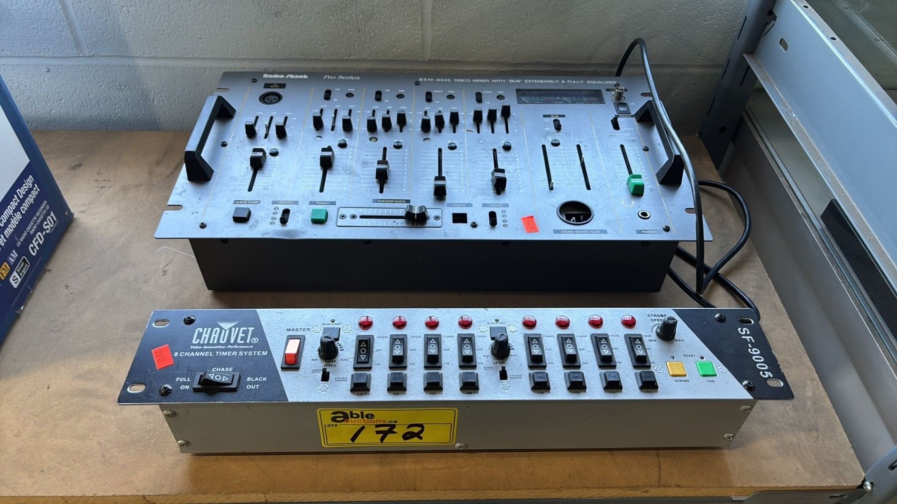 RADIO SHACK PRO SERIES SSM-8045 DISCO MIXER WITH "BUS" EXTENDABLE & FULLY EQUALIZED WITH POWER CORD & A CHAOVET 8 CHANNEL TIMER SYSTEM