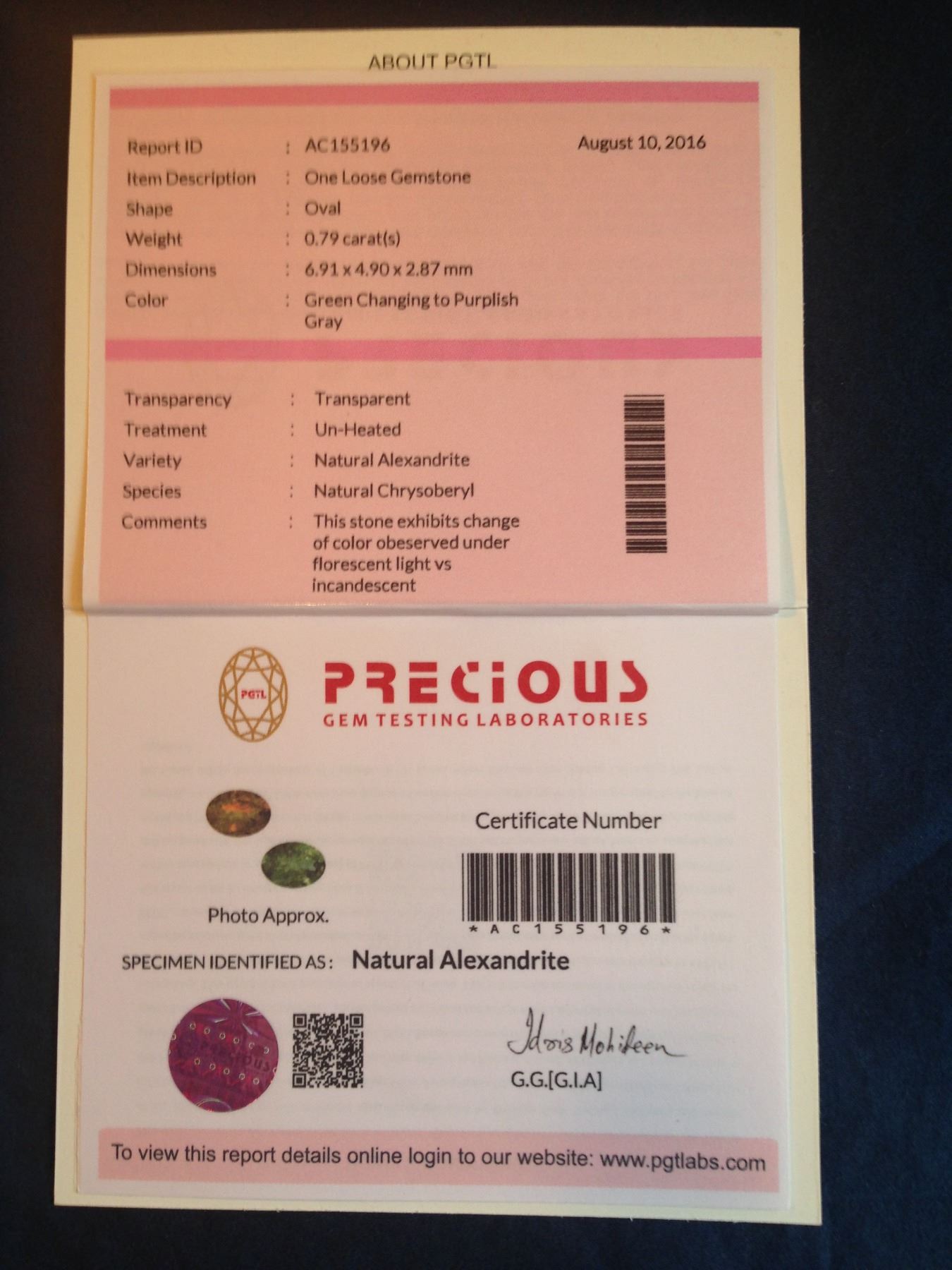 RARE CERTIFIED COLOR CHANGE ALEXANDRITE