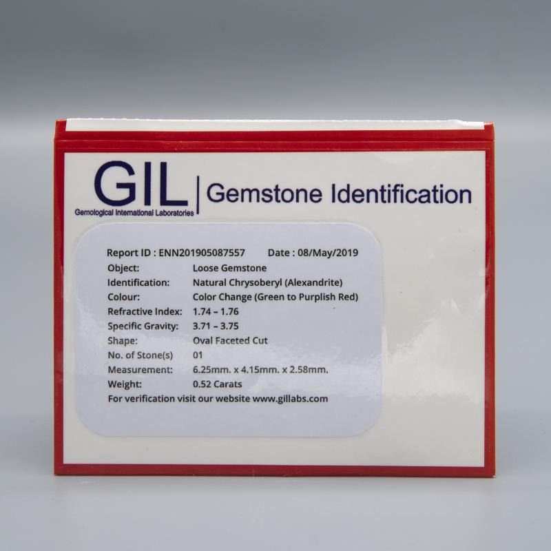 RARE NATURAL 100 % REAL CERTIFIED COLOR CHANGE ALEXANDRITE. COLOR SPECTRUM RANGES FROM BEAUTIFUL GREEN , PINK AND BLUE. FINE OVAL CUT MEASURING 6.25 x 4.15 x 2.58 mm. READY TO MOUNT.TREATMENTS : NONE. PLEASE SEE CERTIFICATION FOR FURTHER DETAILS.