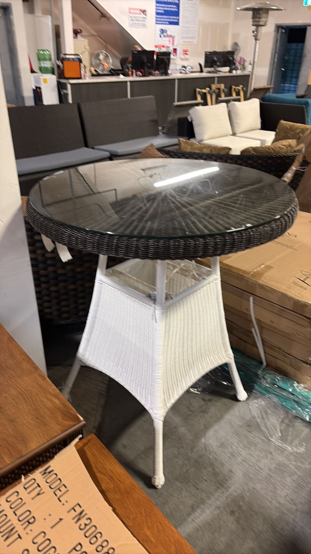 RATANA 36" GLASS TOP PATIO WICKER TABLE