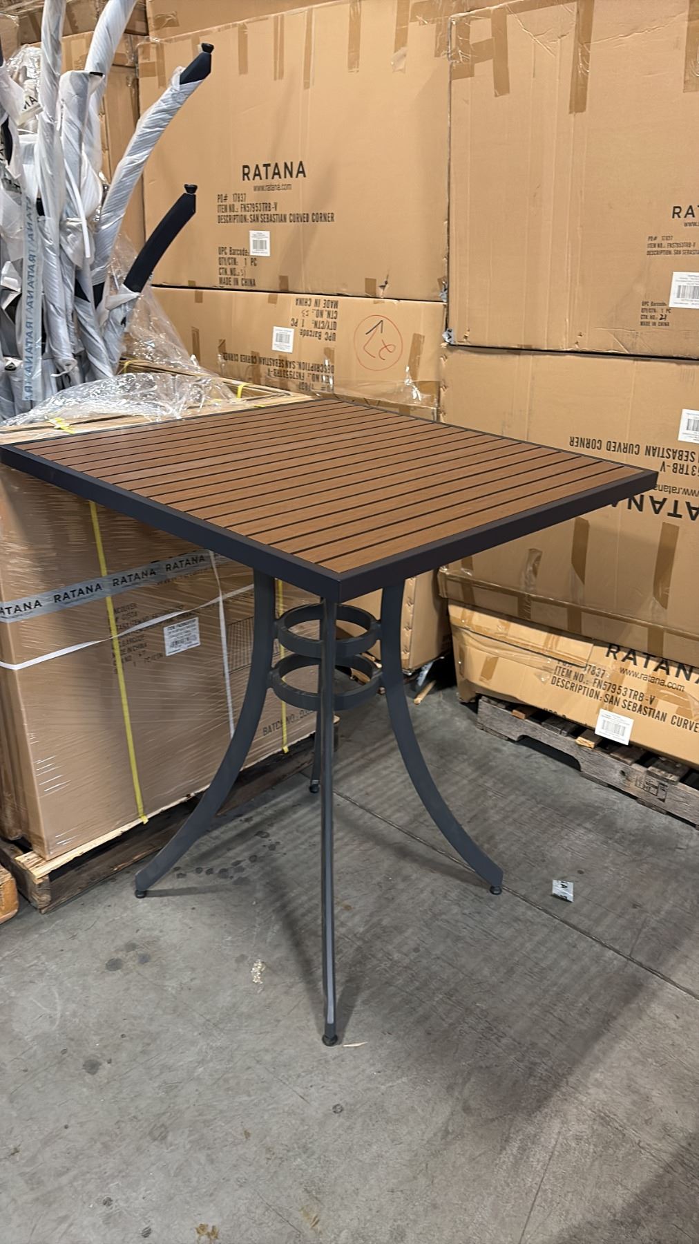 RATANA BAR HEIGHT PATIO TABLE WITH DURAWOOD TABLE TOP APPROXIMATELY 34 X34