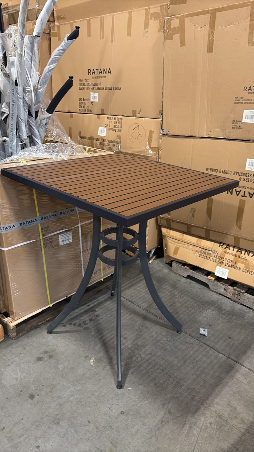 RATANA BAR HEIGHT PATIO TABLE WITH DURAWOOD TABLE TOP APPROXIMATELY 34"X34"