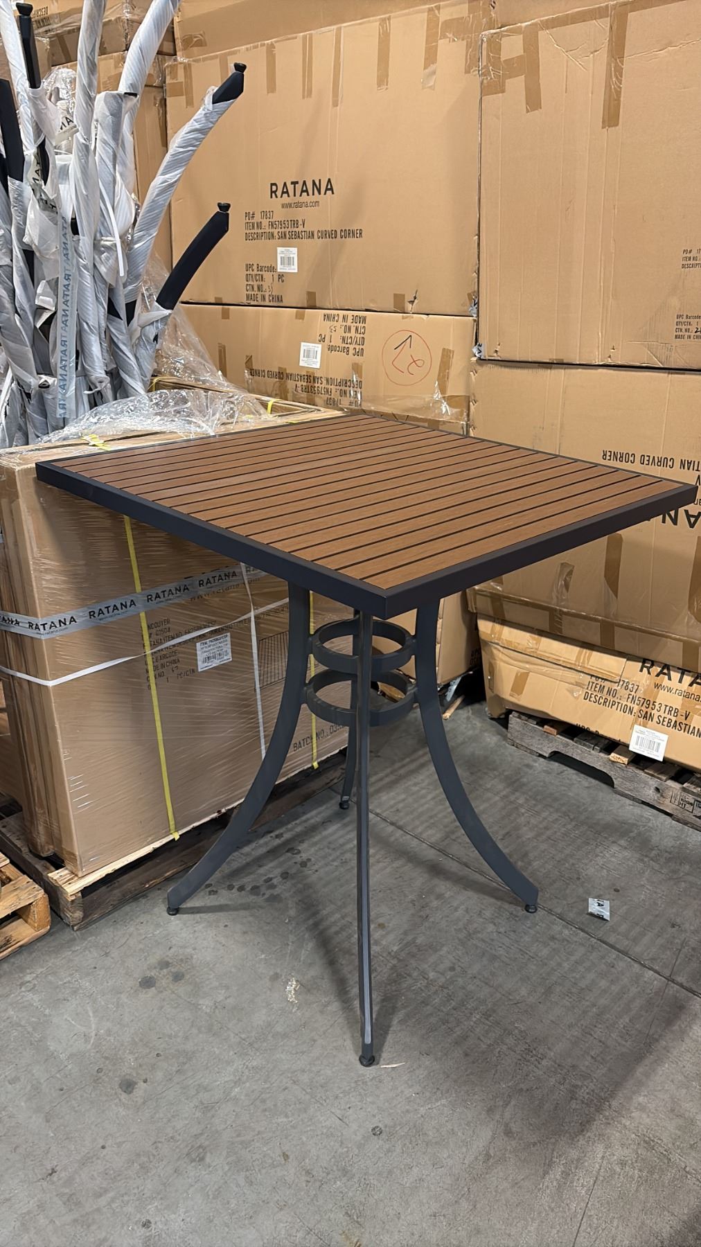 RATANA BAR HEIGHT PATIO TABLE WITH DURAWOOD TABLE TOP APPROXIMATELY 34 X34