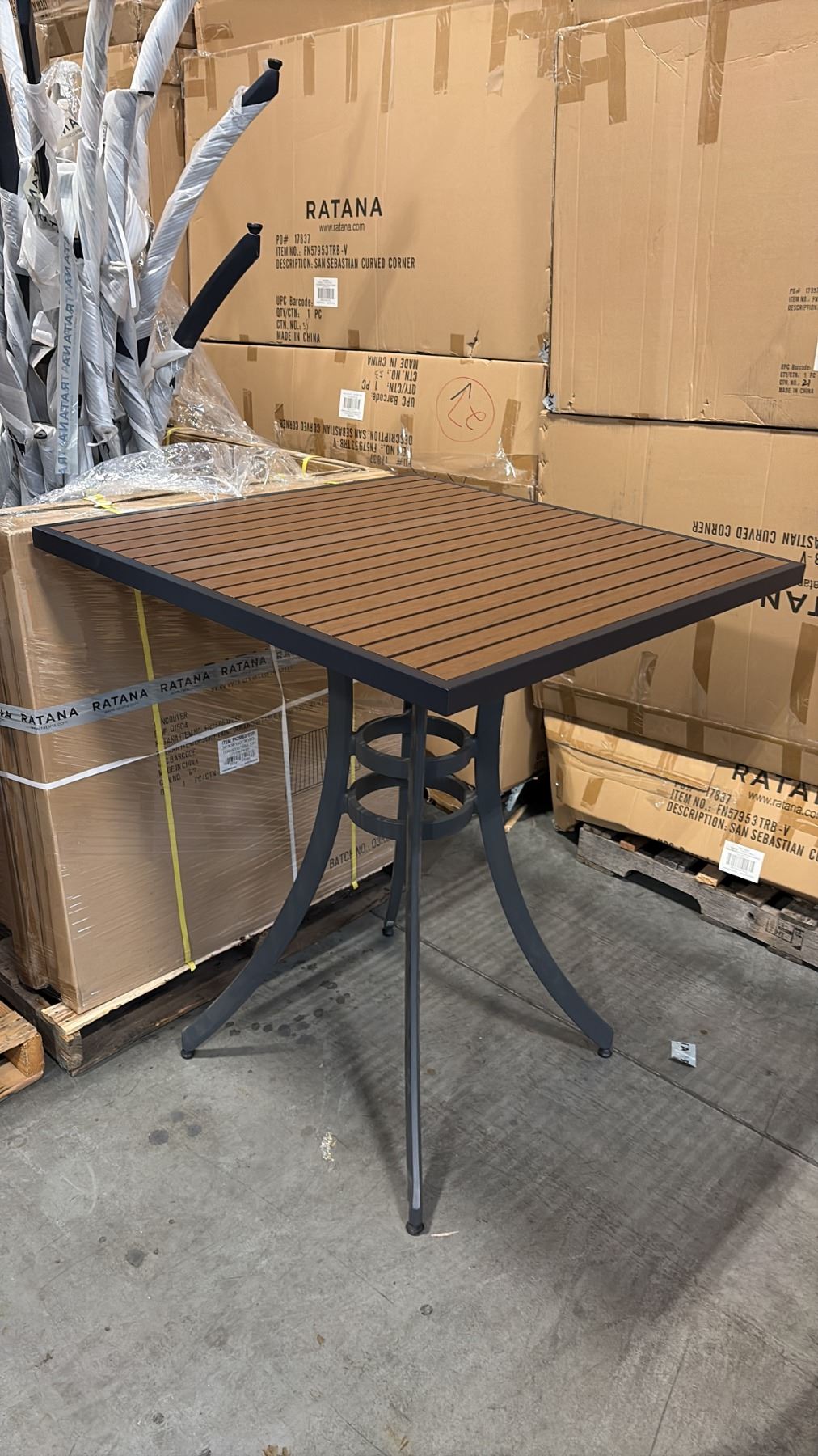 RATANA BAR HEIGHT PATIO TABLE WITH DURAWOOD TABLE TOP APPROXIMATELY 34 X34
