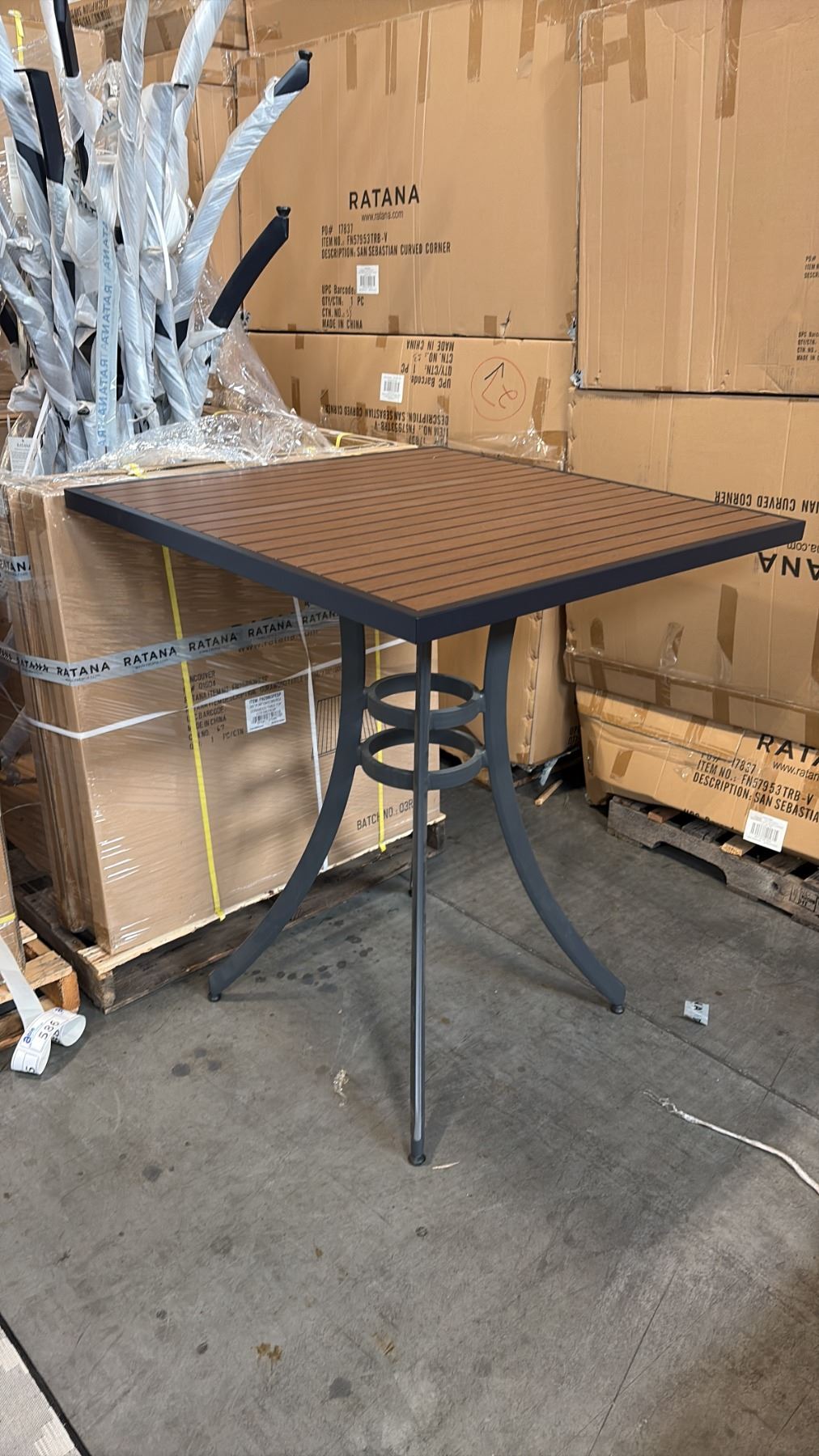 RATANA BAR HEIGHT PATIO TABLE WITH DURAWOOD TABLE TOP APPROXIMATELY 34 X34