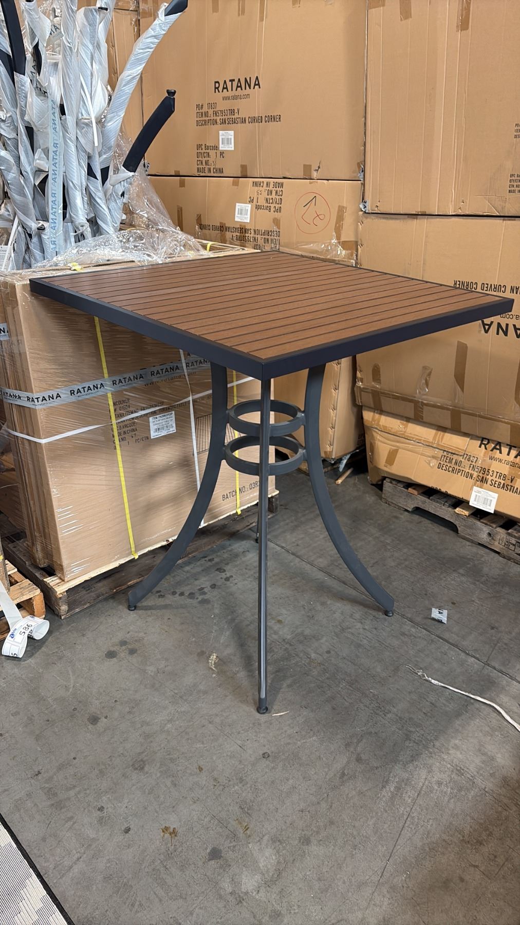 RATANA BAR HEIGHT PATIO TABLE WITH DURAWOOD TABLE TOP APPROXIMATELY 34 X34