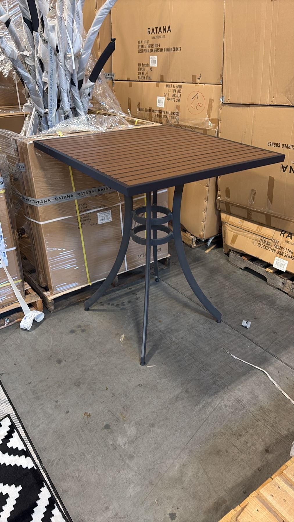 RATANA BAR HEIGHT PATIO TABLE WITH DURAWOOD TABLE TOP APPROXIMATELY 34"X34"