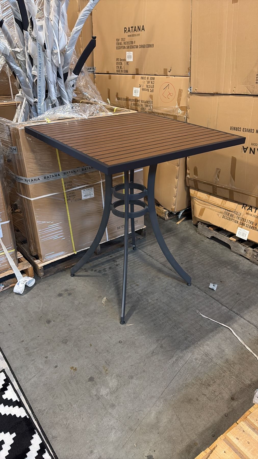 RATANA BAR HEIGHT PATIO TABLE WITH DURAWOOD TABLE TOP APPROXIMATELY 34 X34
