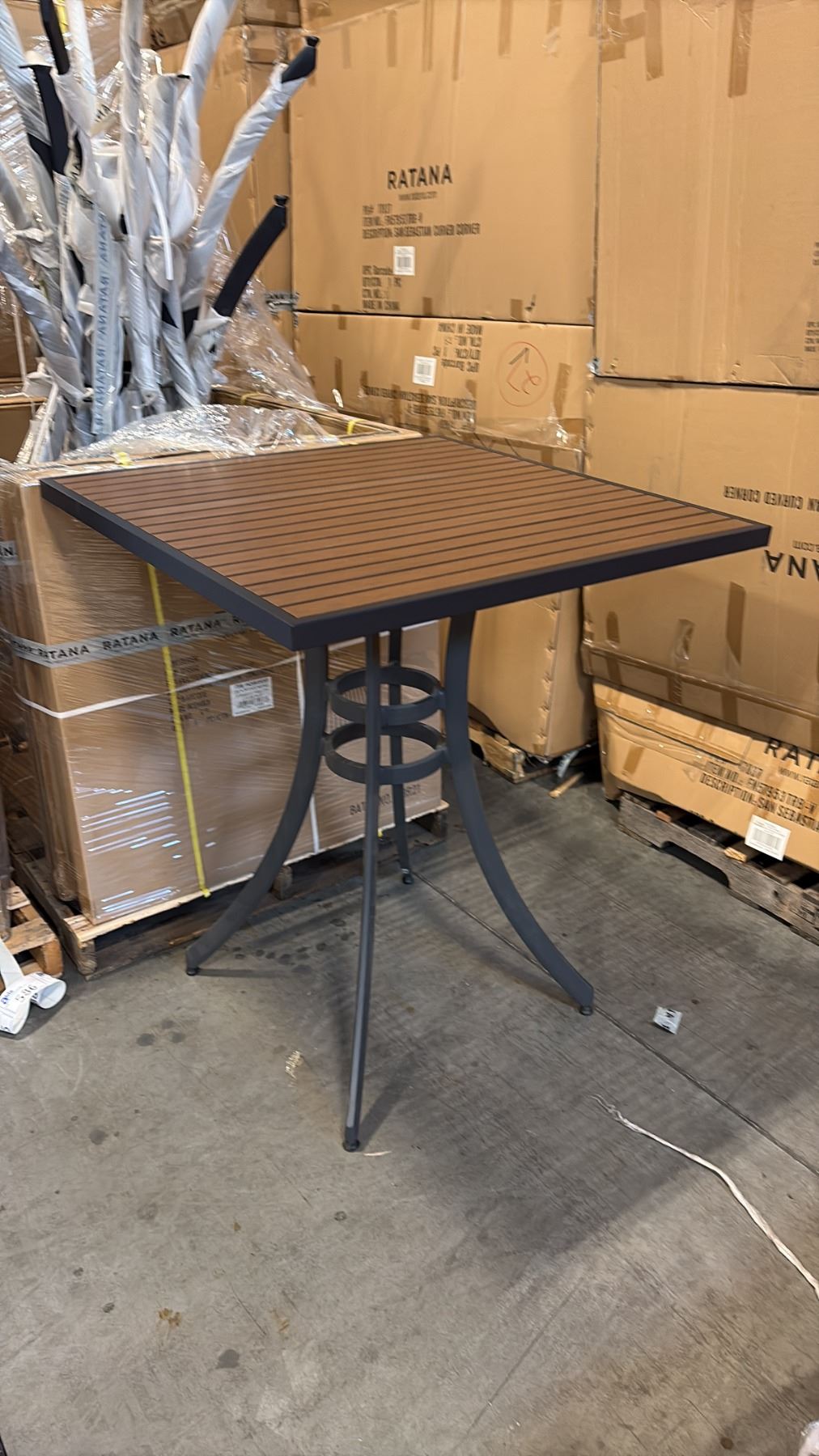 RATANA BAR HEIGHT PATIO TABLE WITH DURAWOOD TABLE TOP APPROXIMATELY 34"X34"