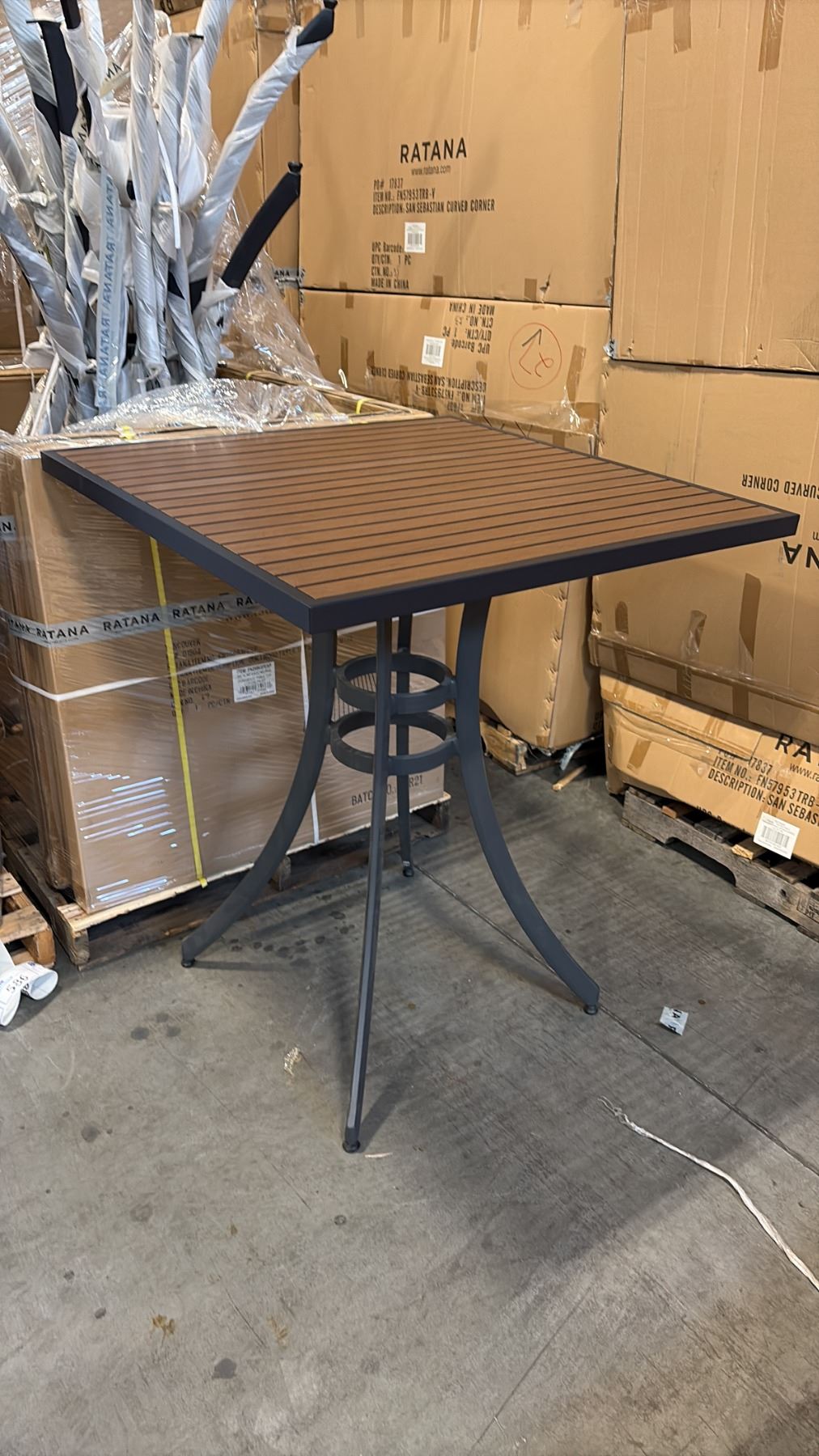RATANA BAR HEIGHT PATIO TABLE WITH DURAWOOD TABLE TOP APPROXIMATELY 34 X34