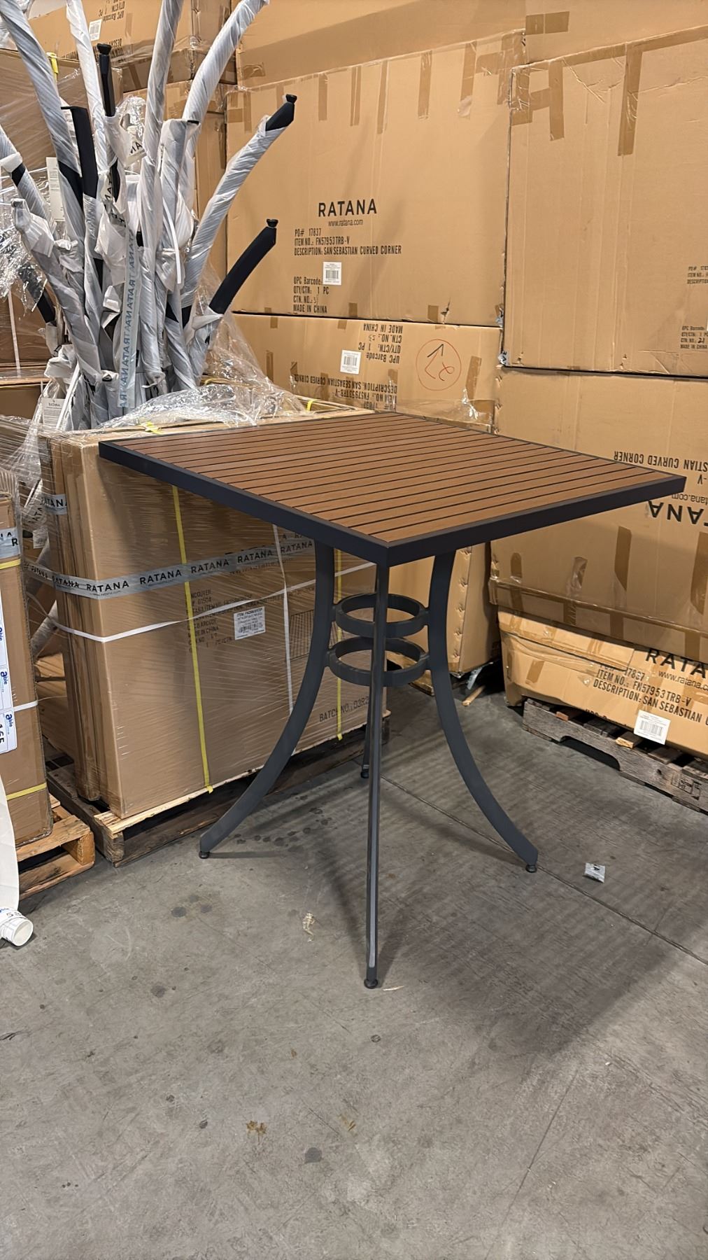 RATANA BAR HEIGHT PATIO TABLE WITH DURAWOOD TABLE TOP APPROXIMATELY 34"X34"