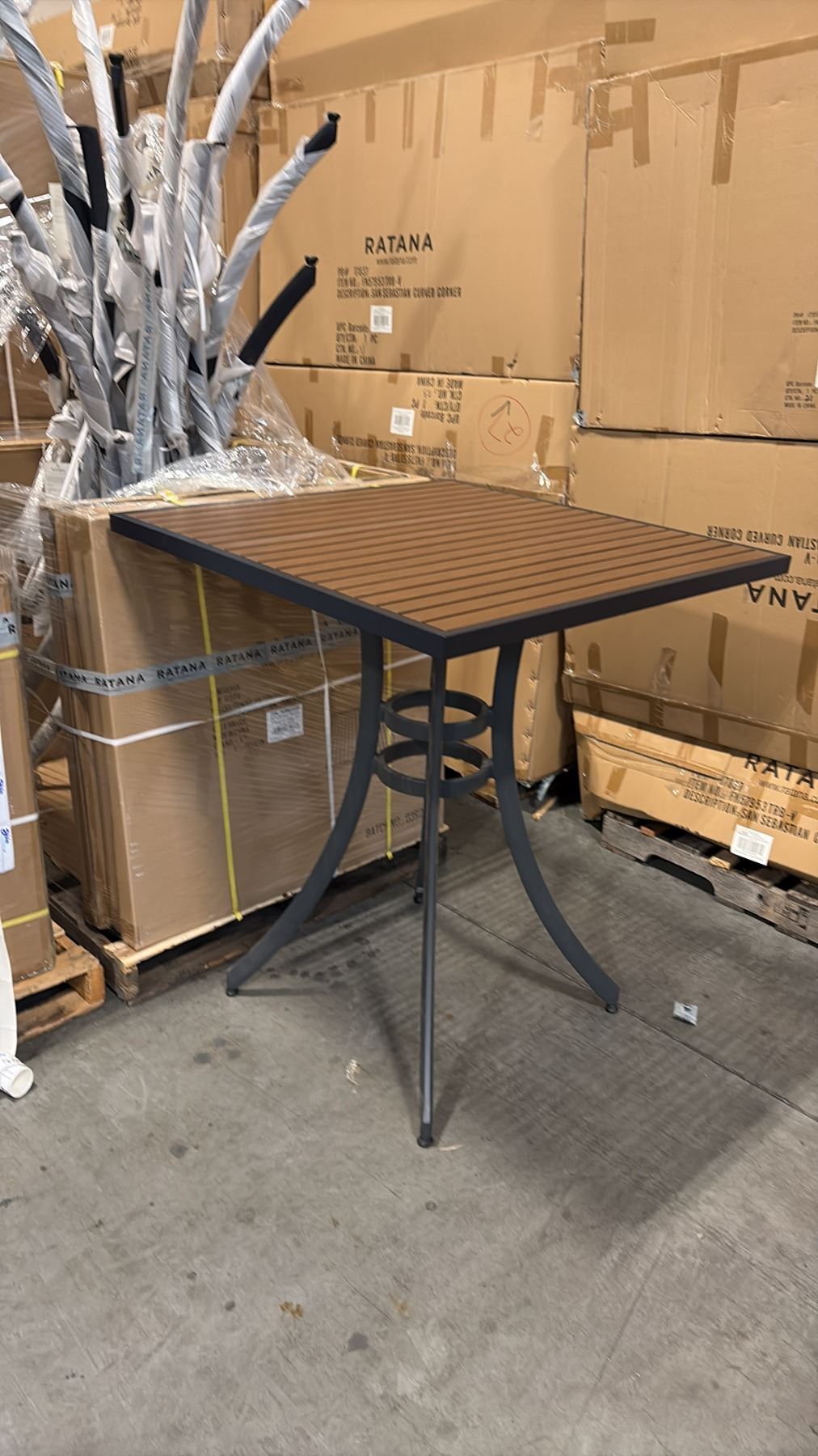 RATANA BAR HEIGHT PATIO TABLE WITH DURAWOOD TABLE TOP APPROXIMATELY 34 X34