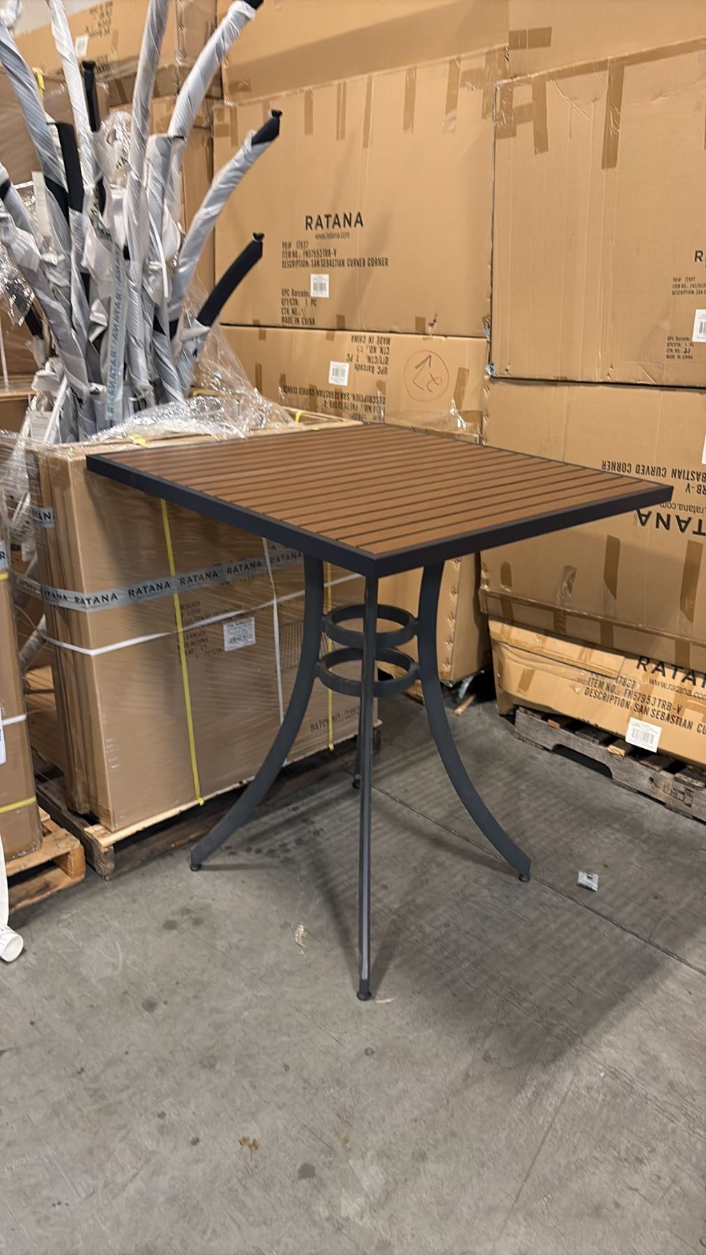 RATANA BAR HEIGHT PATIO TABLE WITH DURAWOOD TABLE TOP APPROXIMATELY 34"X34"